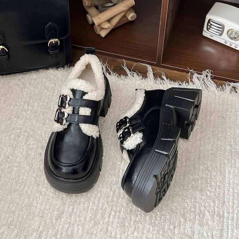 厚底5公分羊羔毛内里百搭时尚乐福鞋