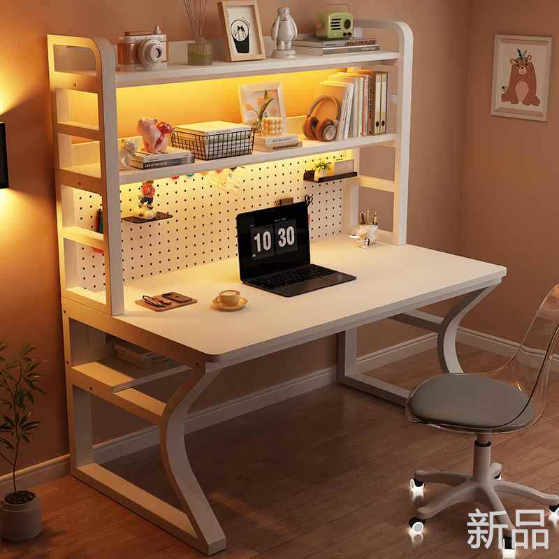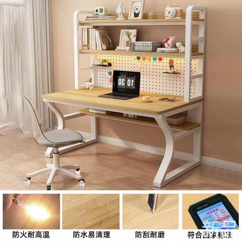 台式电脑桌洞洞板书桌书架一体家用桌子实木卧室学习桌学生写新品