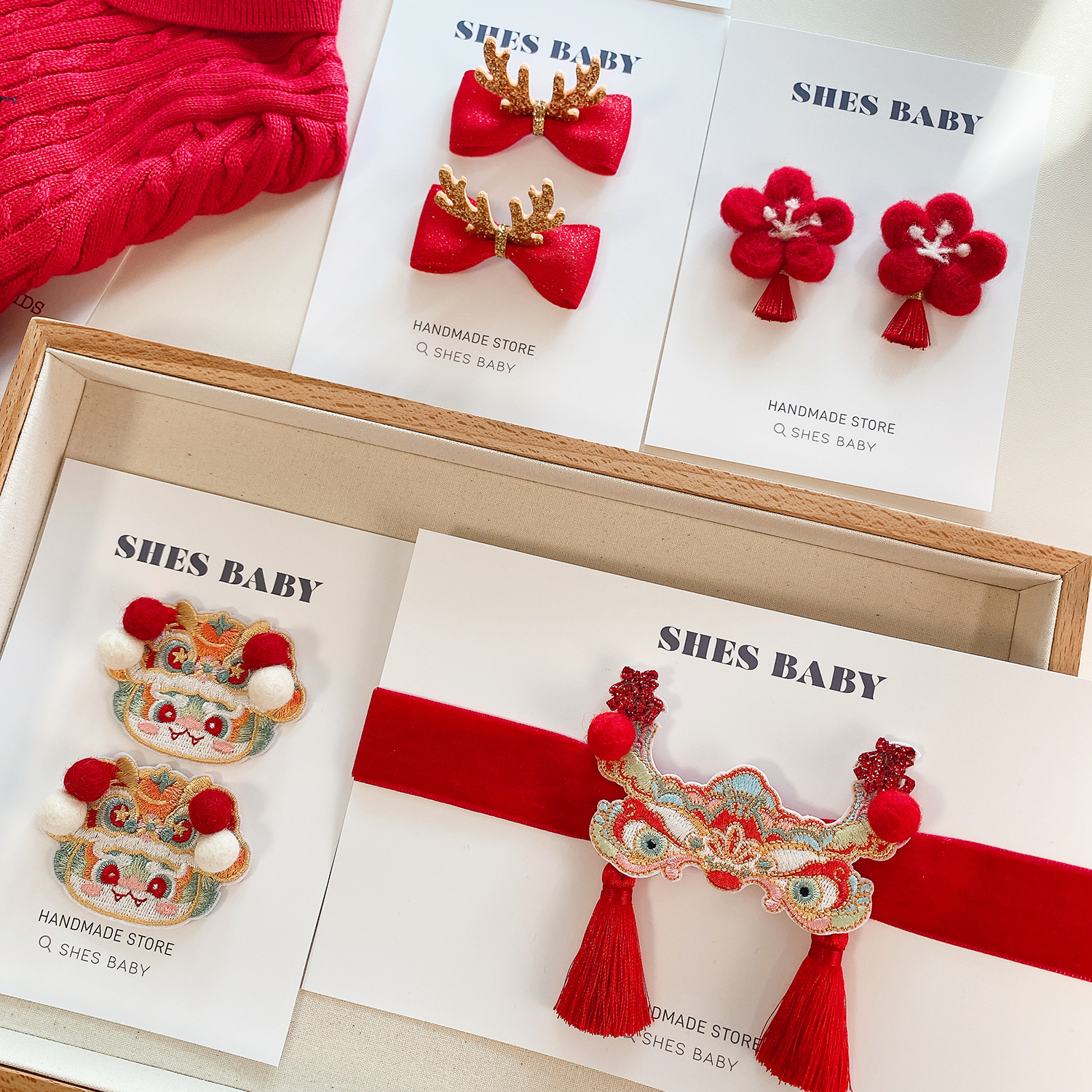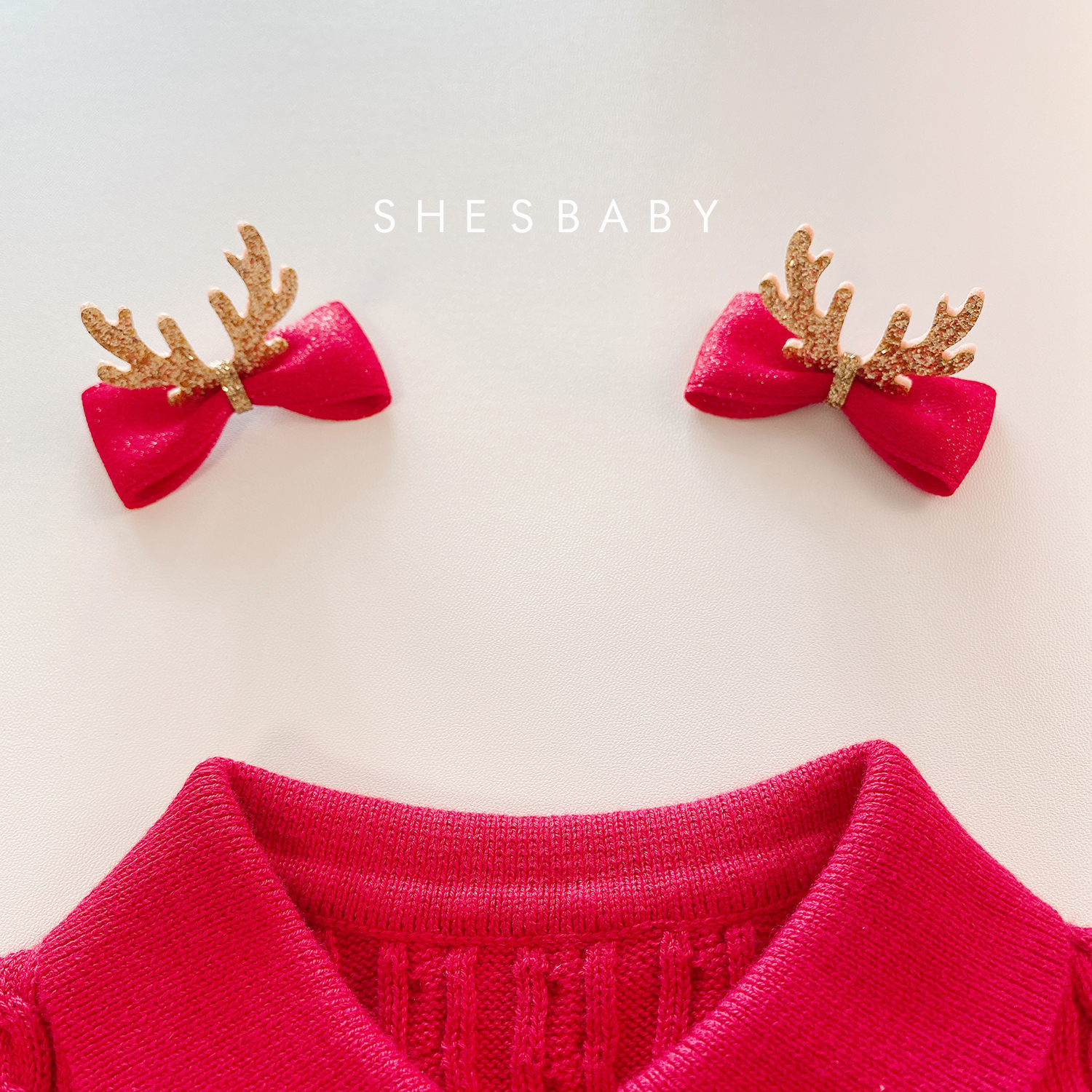 进口红色女圣诞发夹蝴蝶结儿童头饰金闪闪小鹿角发饰宝宝周岁发带