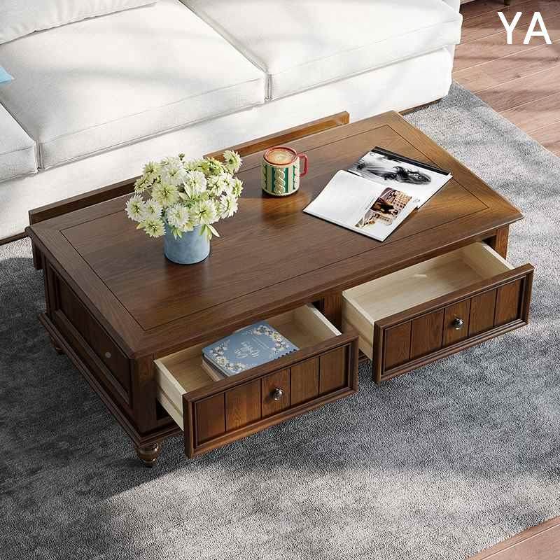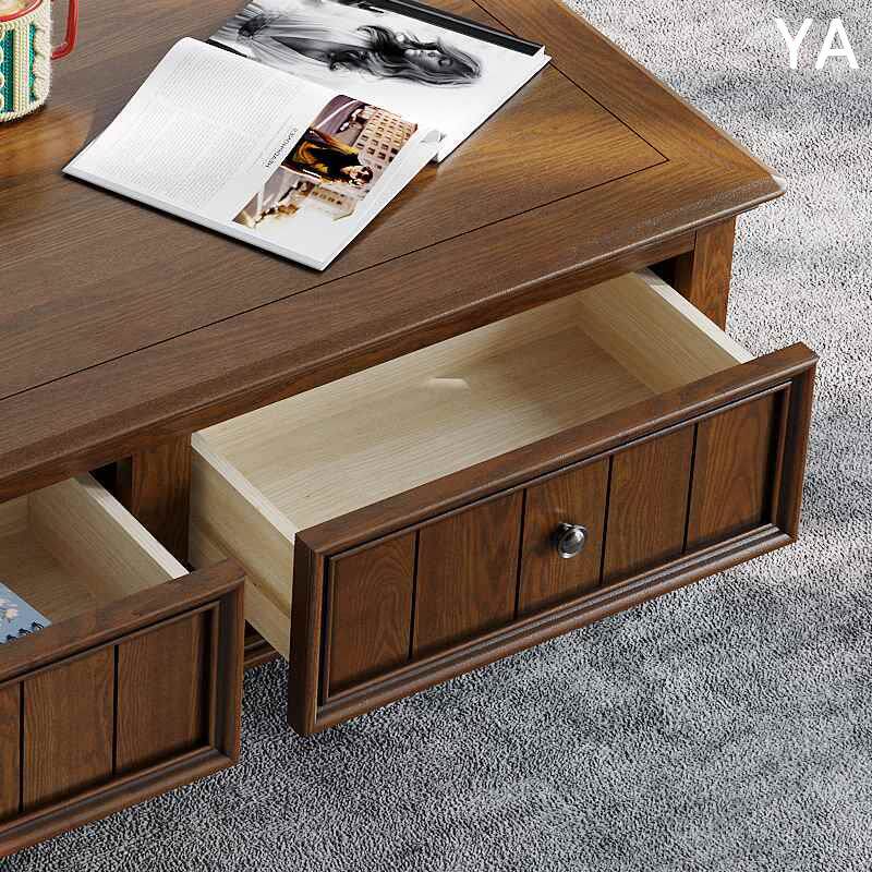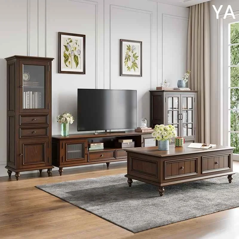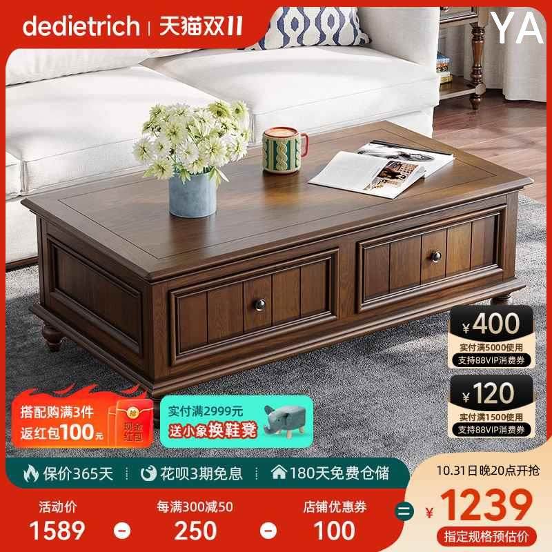 美式全实木茶几电视柜组合小户型客厅复古茶桌简约储物茶台新款