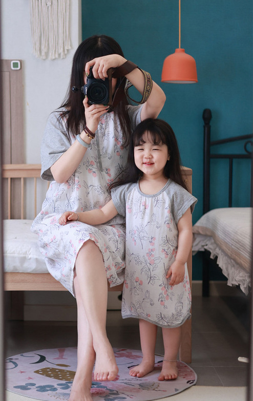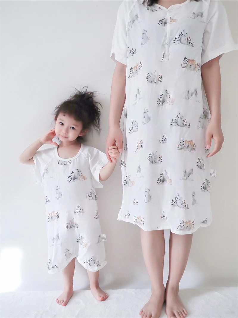 夏竹棉宝宝睡衣轻薄透气吸汗A类纱布亲子家居服妈妈睡裙婴儿睡袋