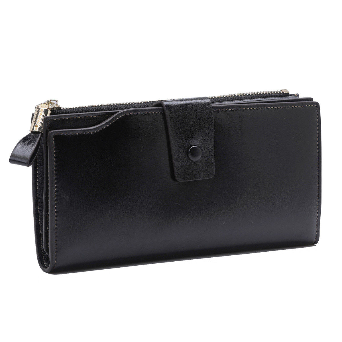 头层真皮防RFID女士钱包长款韩版油蜡皮钱包牛皮女式多卡位钱夹
