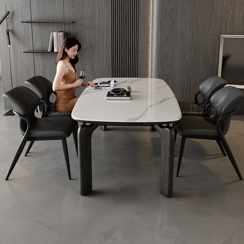法莎蒂岩板餐桌椅现代简约小户型北欧实木桌家用大象腿餐桌
