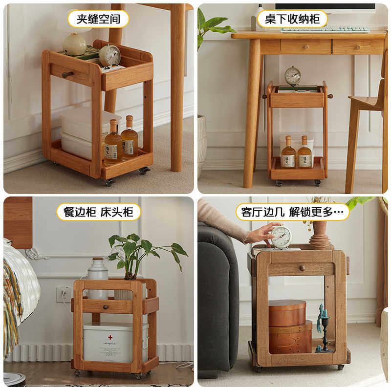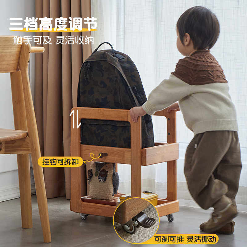 全实木儿童蒙氏书包架桌旁桌下可移动书架收纳小推车放书包置