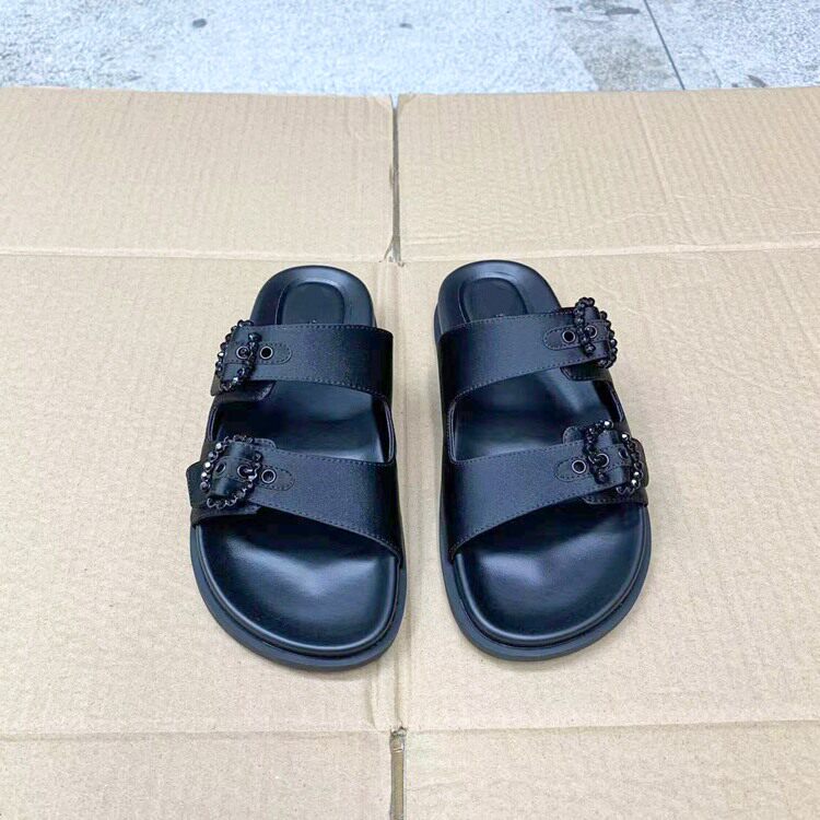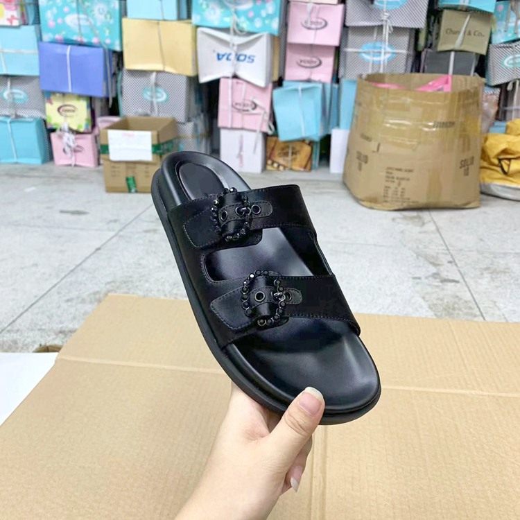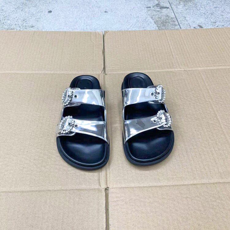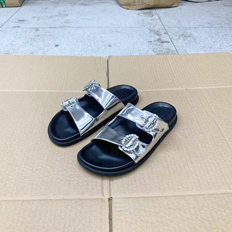 外贸原单女鞋新款纯色亮钻圆扣外穿厚底休闲百搭凉拖鞋