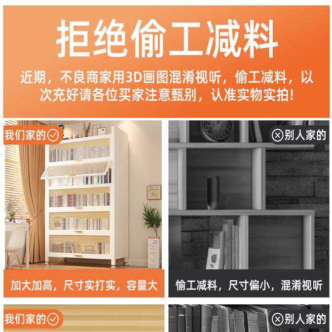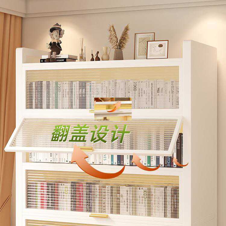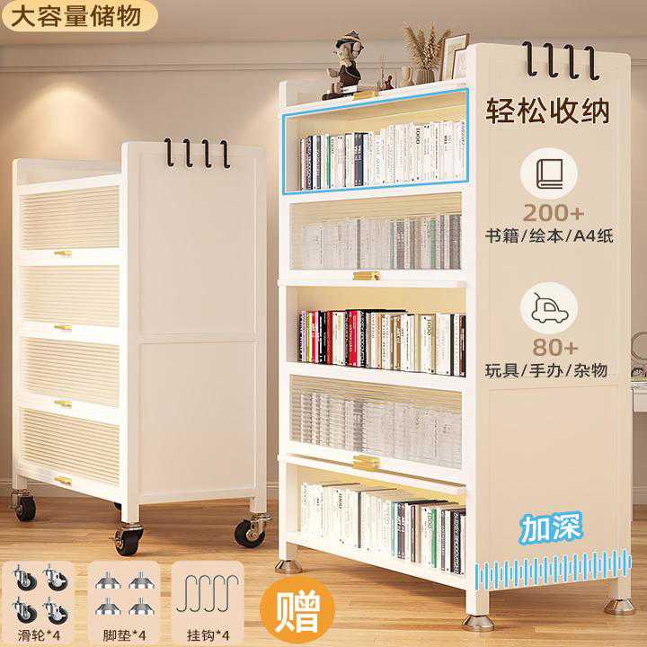 钢制书架落地置物架带门儿童书柜家用客厅储物柜子防尘展示柜铁艺