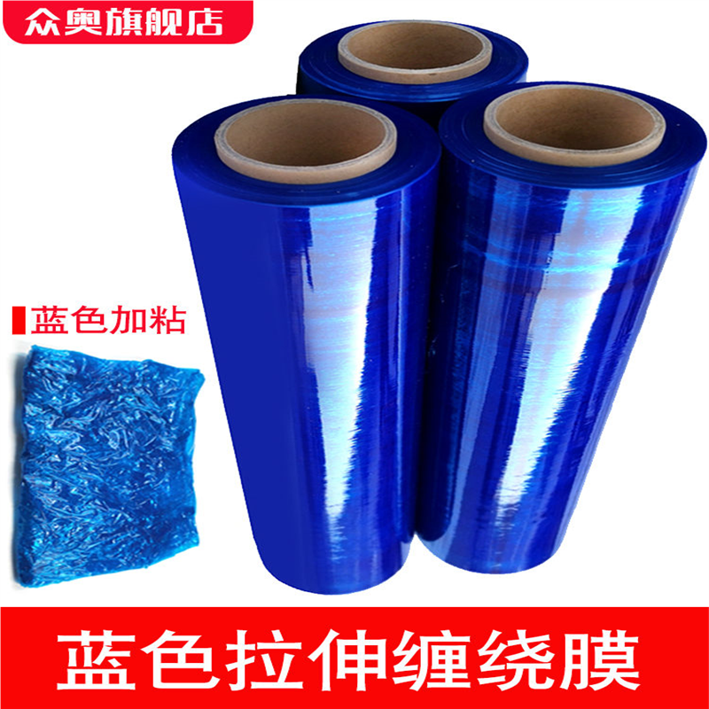 pe蓝色缠绕膜50cm宽打包膜拉伸膜护栏打包膜包装膜工业大卷保鲜膜