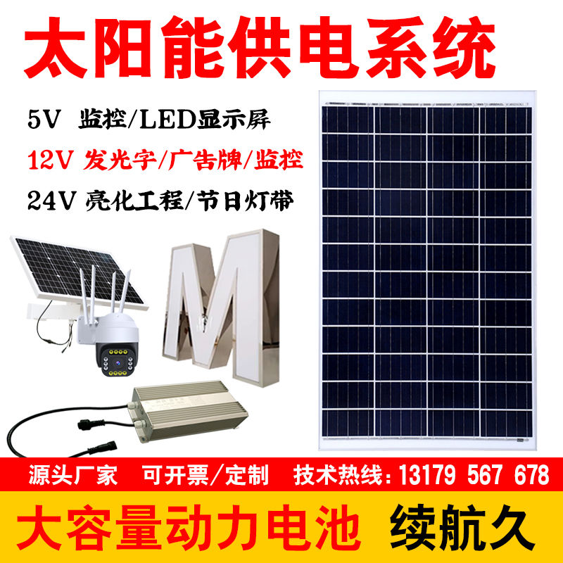 皓天羽太阳能监控供电系统12V工程专用安防户外充电发电板光伏板