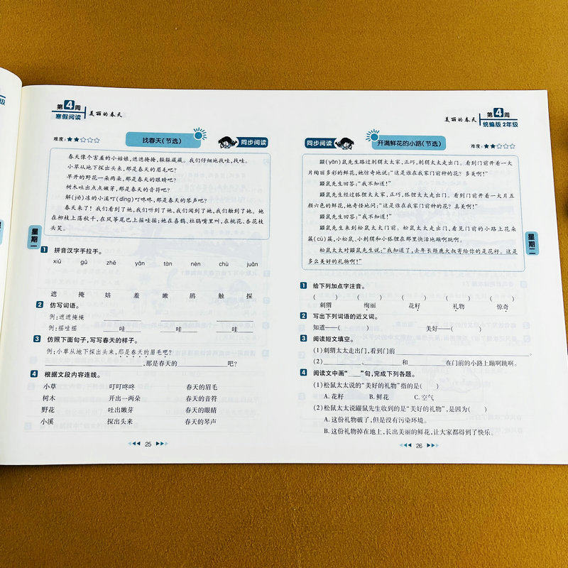 寒假阅读大考卷二年级人教版语文教材配套阅读训练小学2年级上下册课内课外阅读理解测试卷寒假作业本同步提升阅读28天提升计划