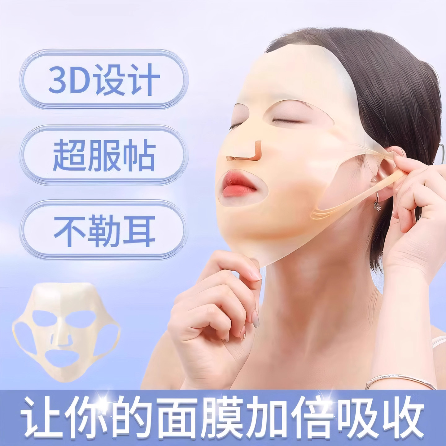 湿敷面膜辅助神器金色硅胶面膜罩仿蒸发3D立体款美容面罩挂耳式
