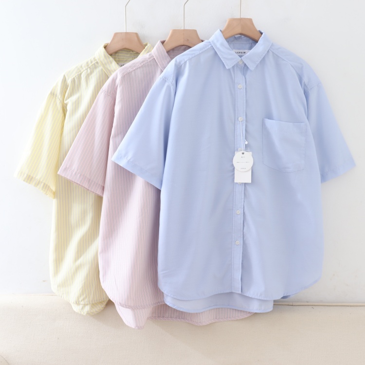 C03031日单夏新款客供料通勤单排扣宽松显瘦女条纹休闲中长款衬衫