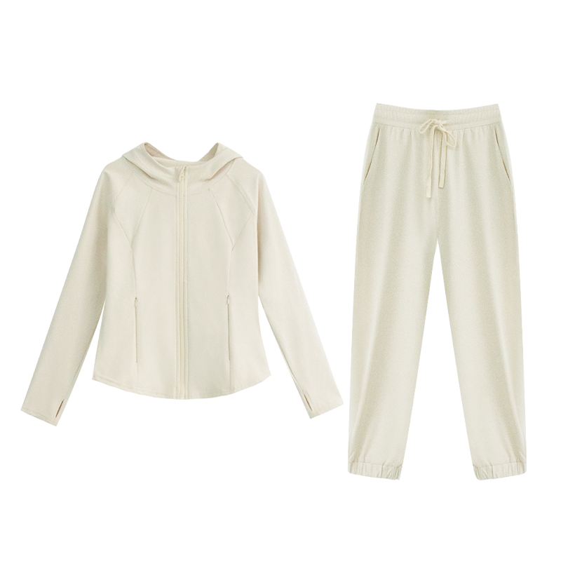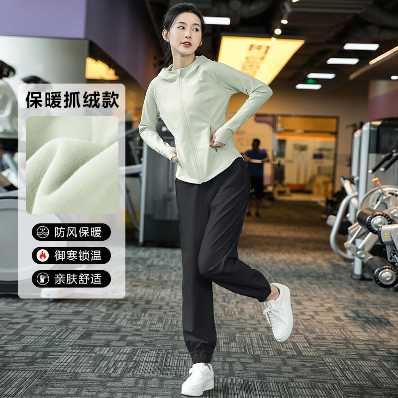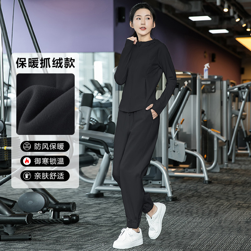 秋冬户外运动健身宽松休闲连帽加绒显瘦瑜伽服薄款套装长袖女1243
