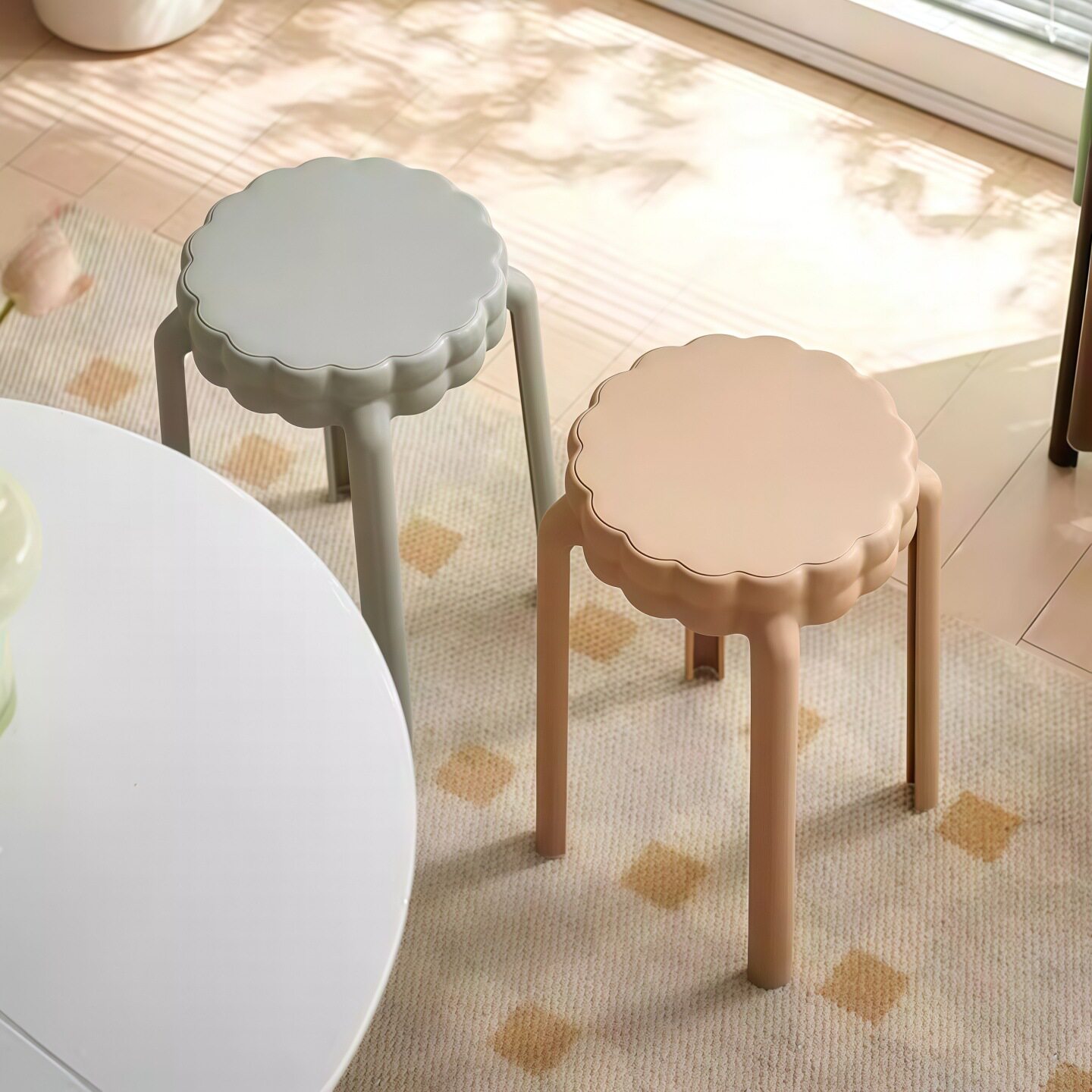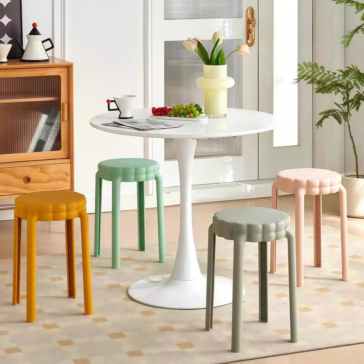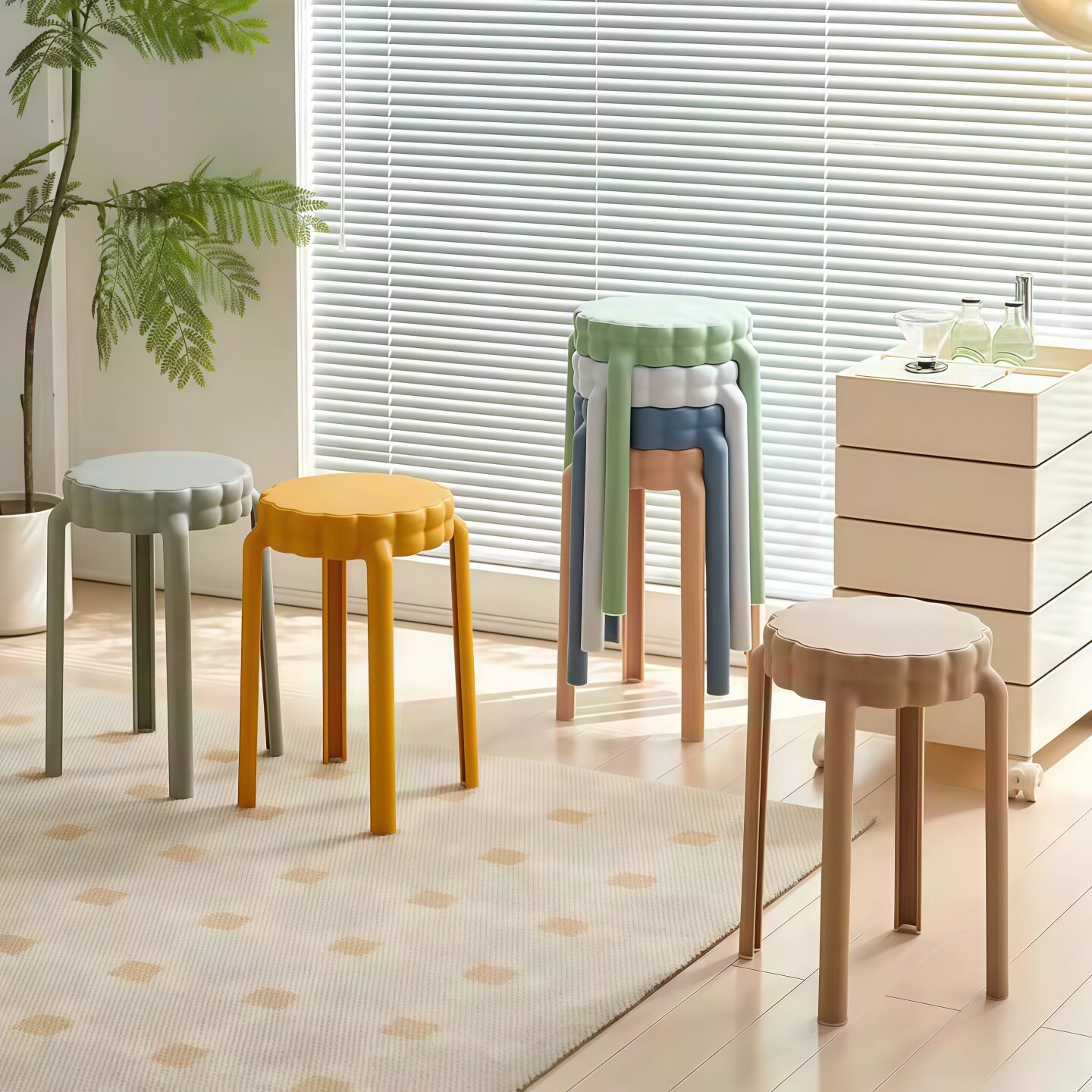北欧简约塑料圆凳 可叠放家用高凳 651型现代风格塑料椅 梳妆用塑