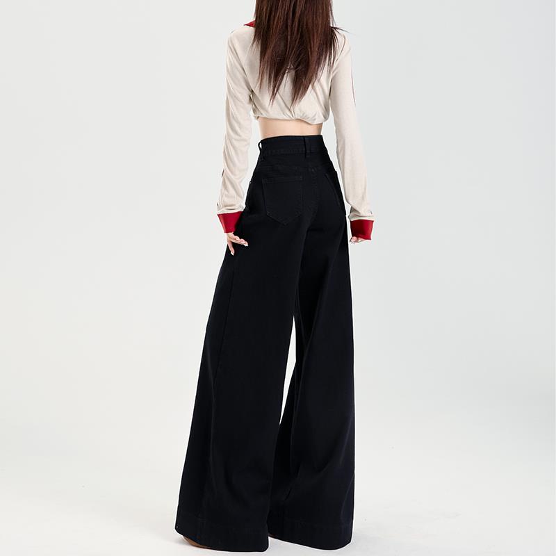 首页> 女装> 黑色大阔腿微喇牛仔裤女春季2025新款显瘦宽松不贴腿拖地喇叭裤子