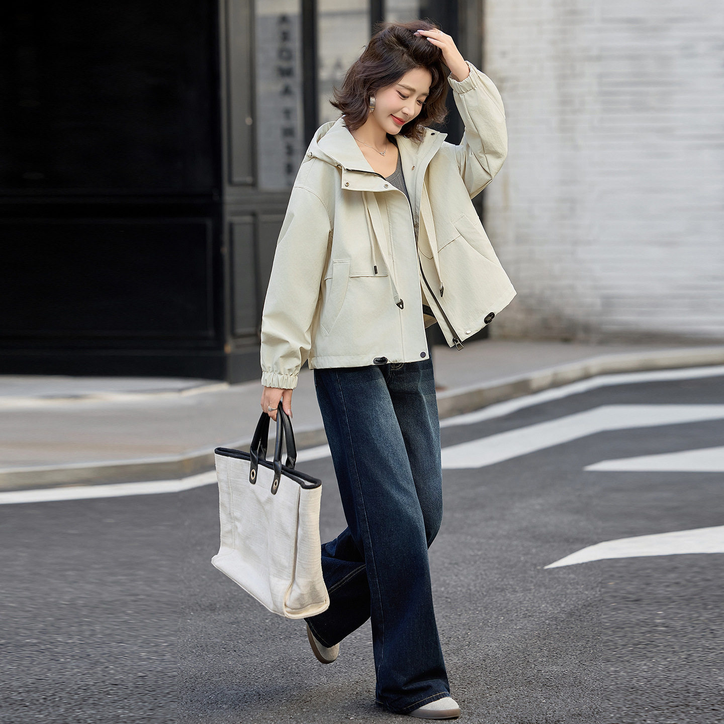 2025秋装新款外套女时尚连帽外套女韩版外套女上衣宽松休闲促销