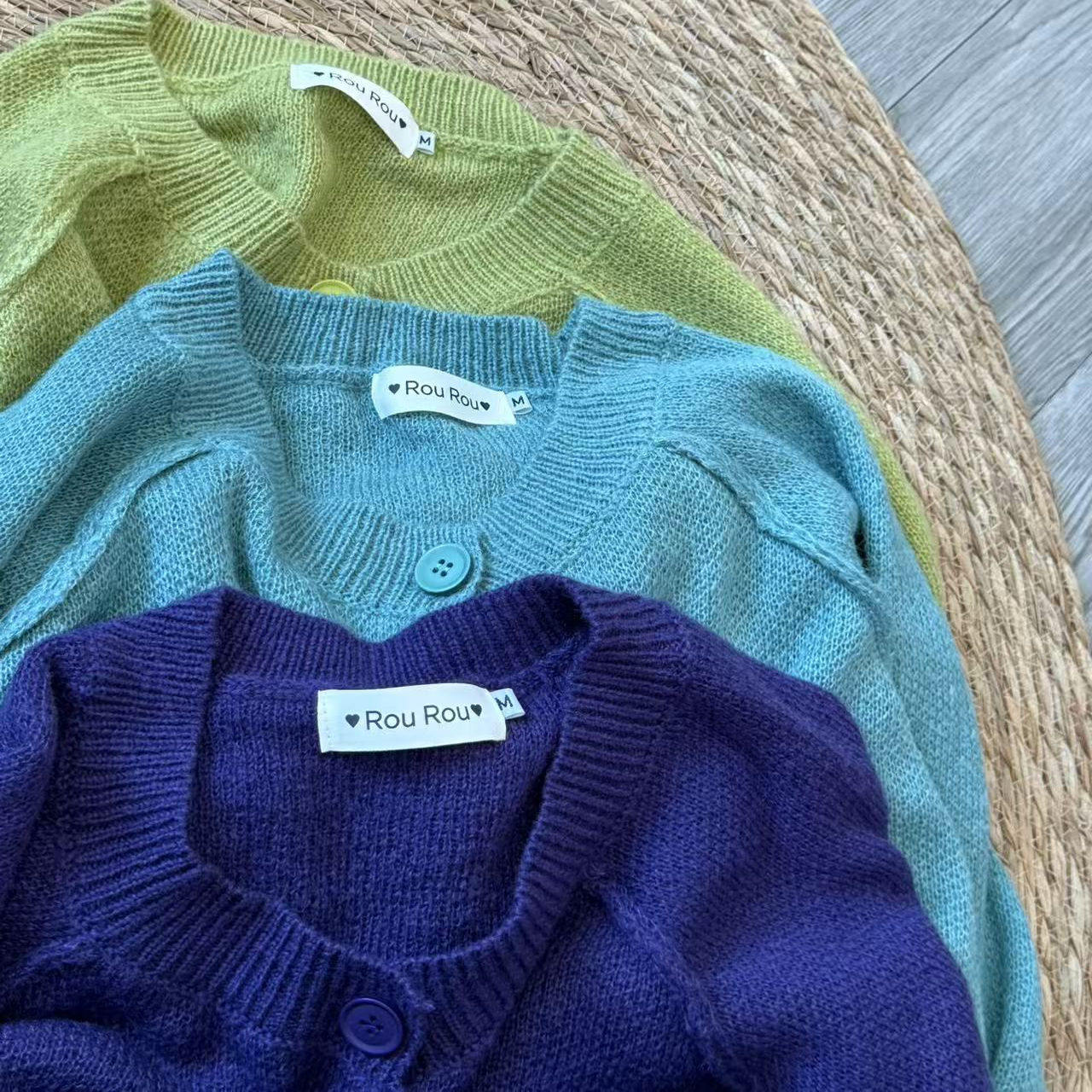2321#【自由旅人】韩系多巴胺圆领开衫毛衣