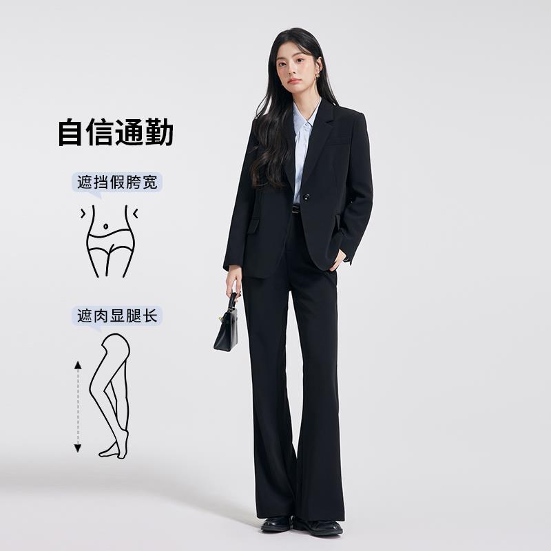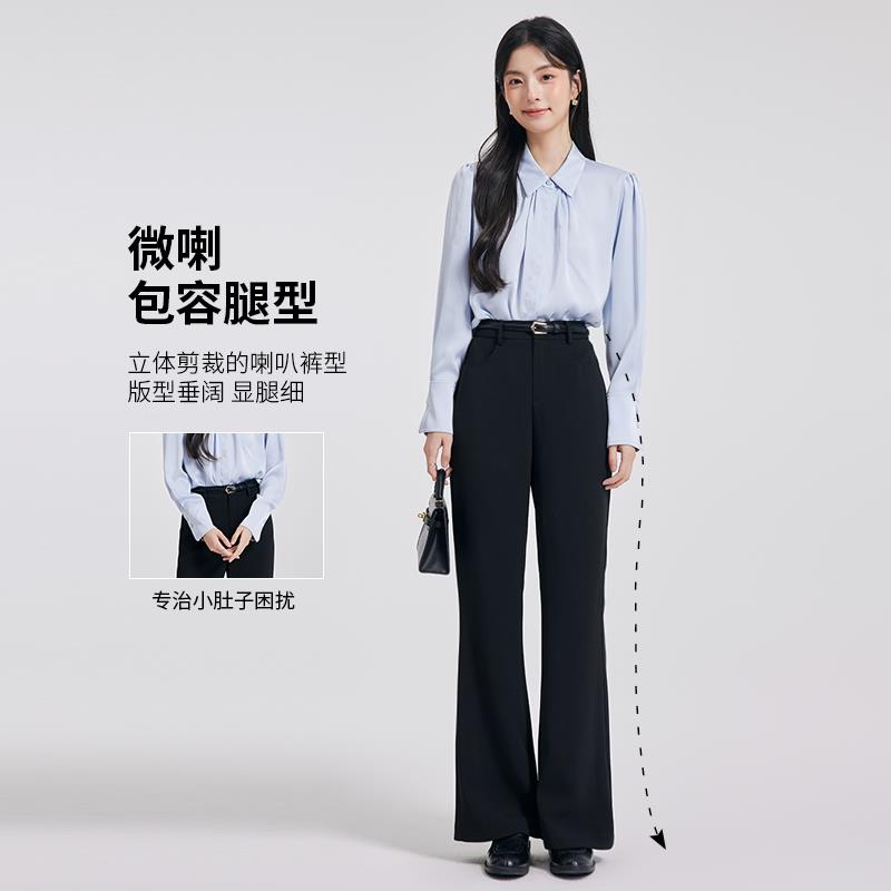 达佳诗-修身微喇 黑色裤子女款夏通勤喇叭裤职业西装裤女士西裤