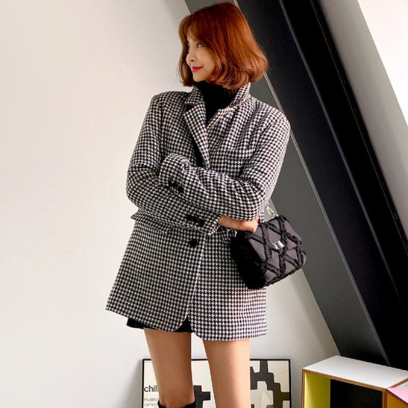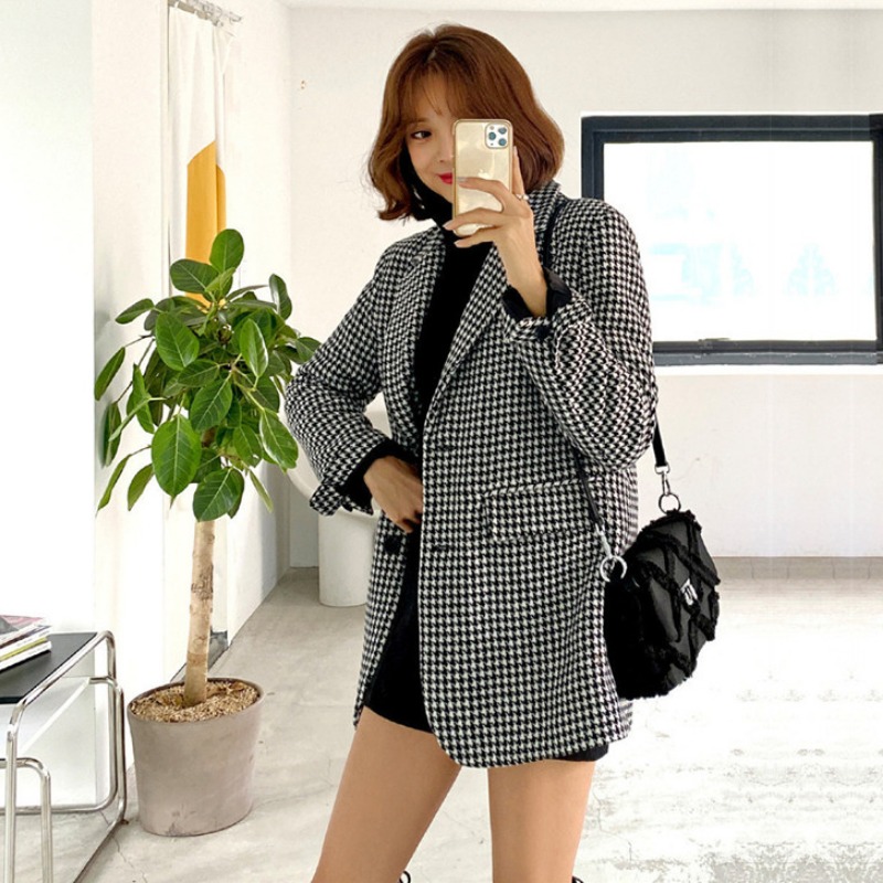 千鸟格复古格子休闲西服上衣女2025韩版两粒扣简约显瘦小西装外套