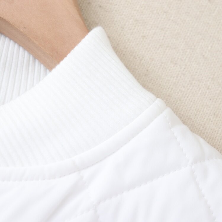 首页> 女装> D01076日单秋冬新款客供料螺纹领按扣宽松保暖女通勤休闲中长棉服