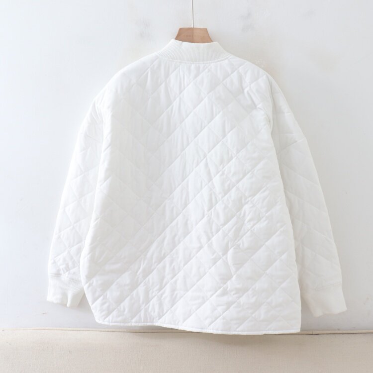 D01076日单秋冬新款客供料螺纹领按扣宽松保暖女通勤休闲中长棉服