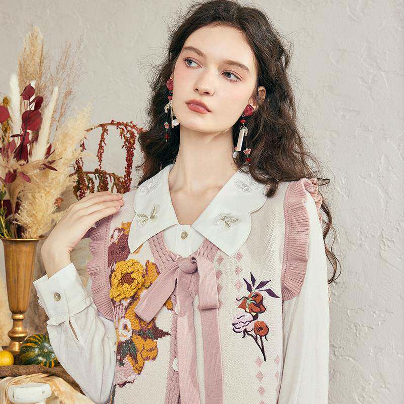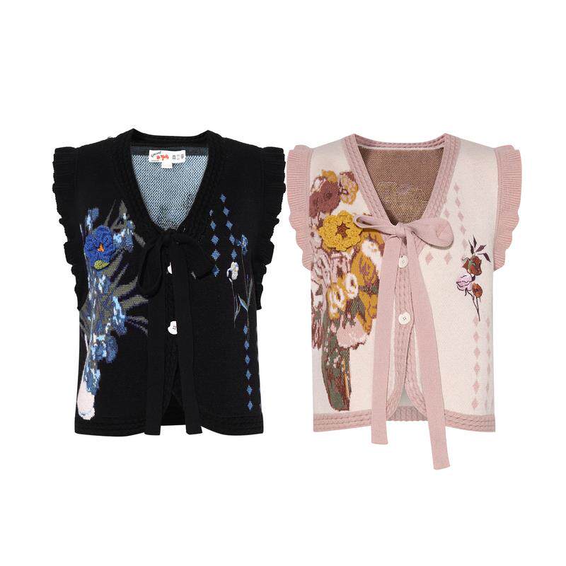 两三事梵高v领针织马甲女春季2025新款无袖毛衣叠穿背心 银河甜心