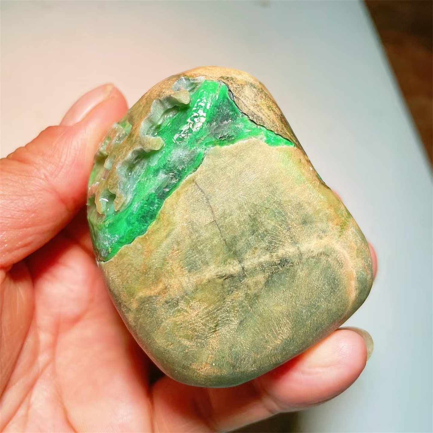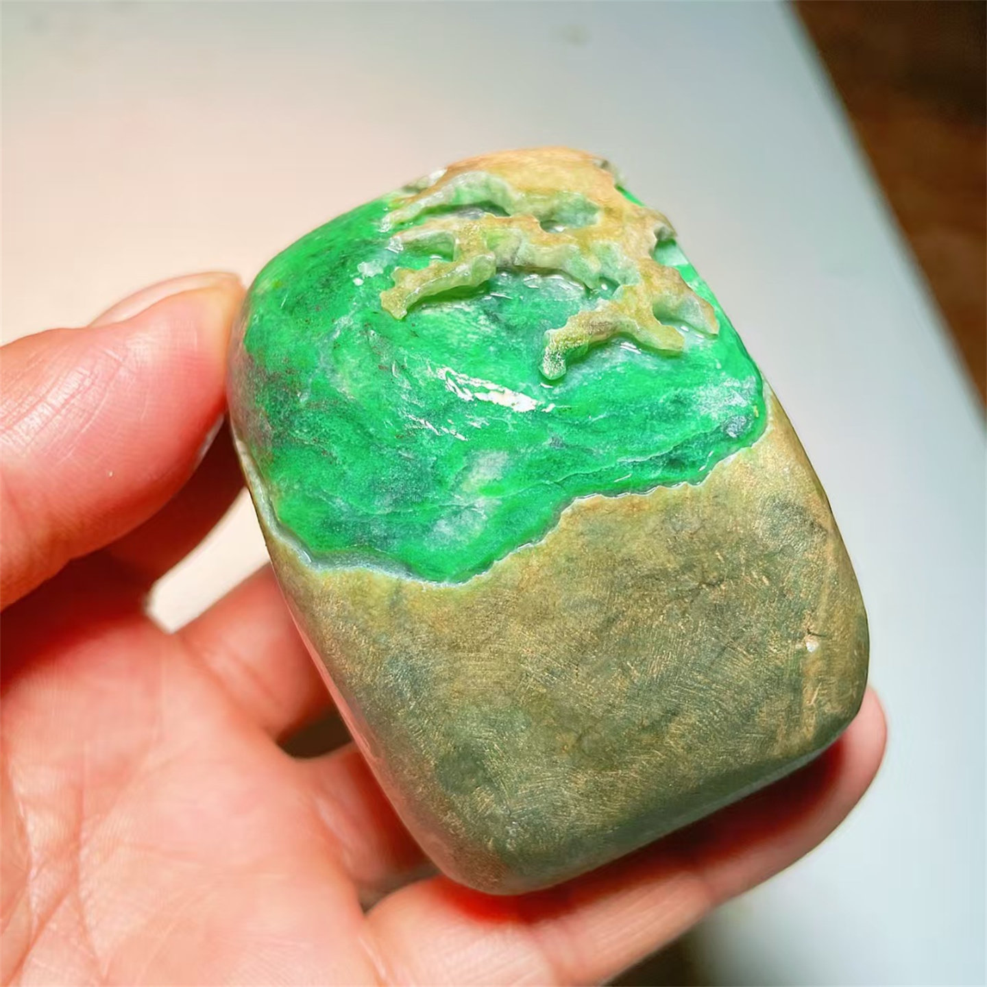 A54 精品缅甸天然翡翠原石老坑后江场口色料牌子料 重428克