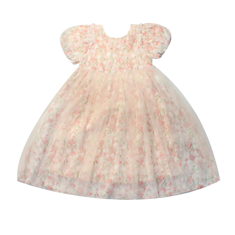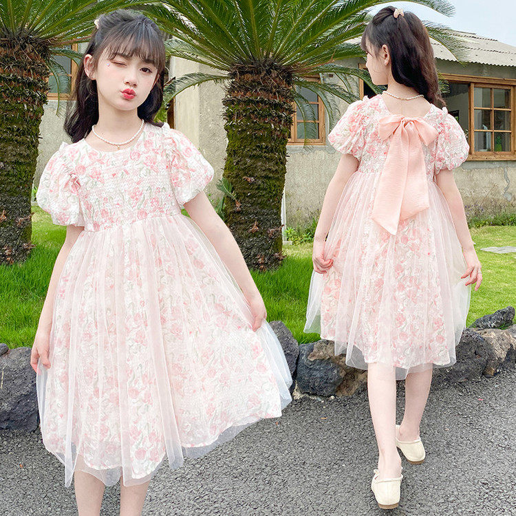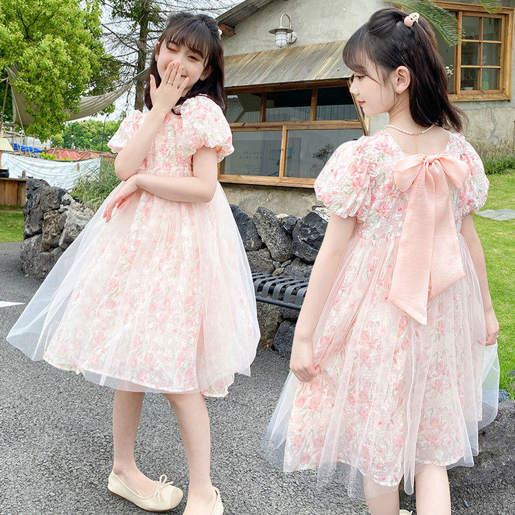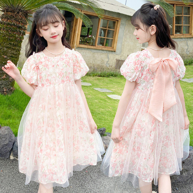 甜美少女风泡泡袖碎花连衣裙女夏装中裙公主裙洋气