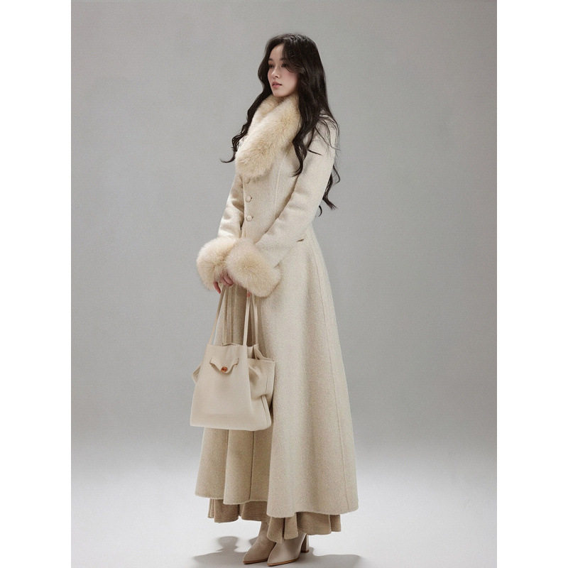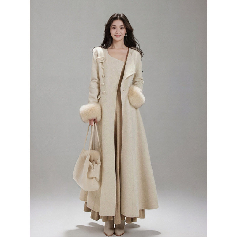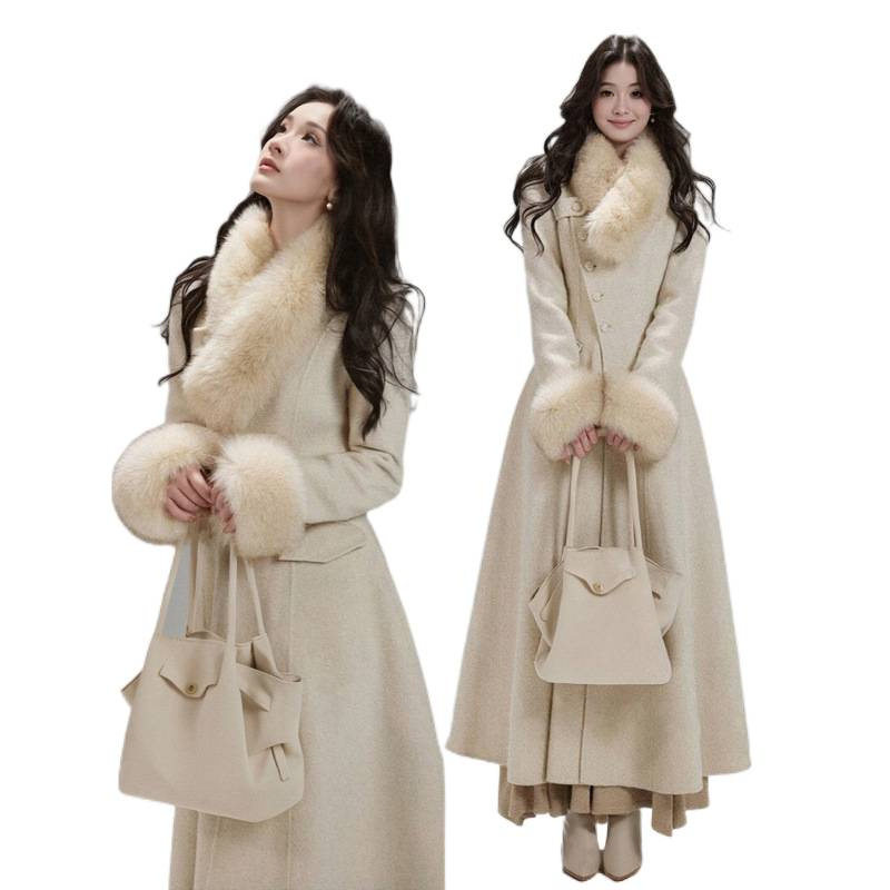 长款大毛领毛呢外套女大码胖mm收腰显瘦独特高级气质温柔保暖大衣