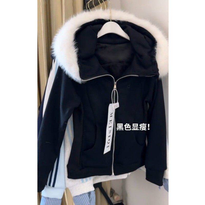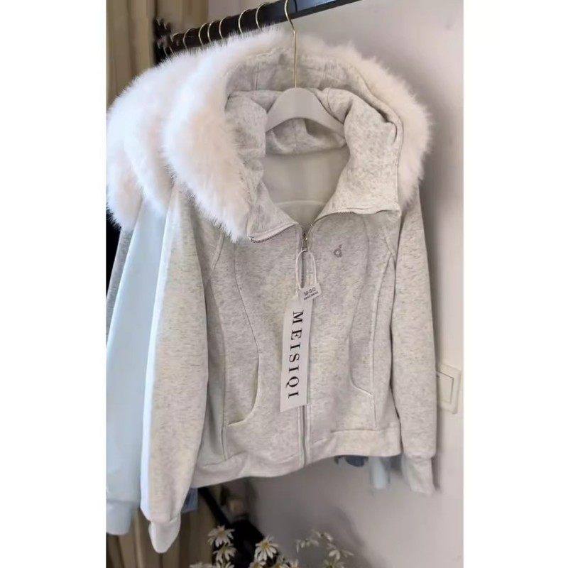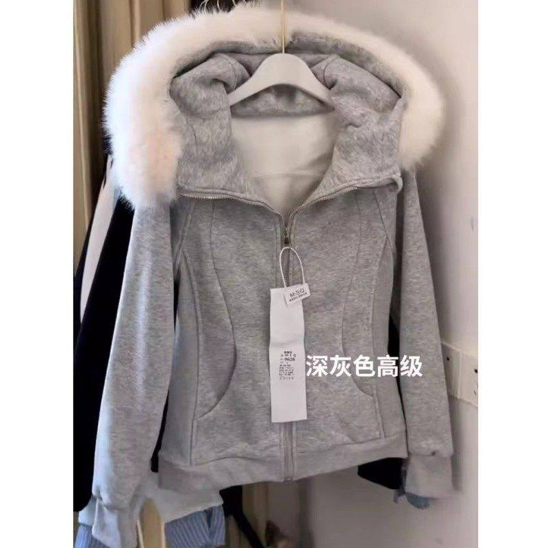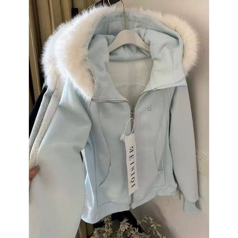 2025新款秋冬季lulu可拆卸毛领加绒卫衣女高级感修身显瘦连帽外套