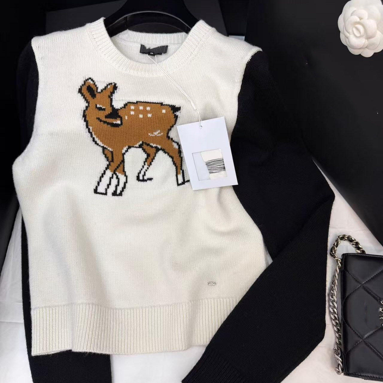 好漂亮黑白拼色小鹿针织套头衫女2025年冬季新款毛衣名媛气质时尚
