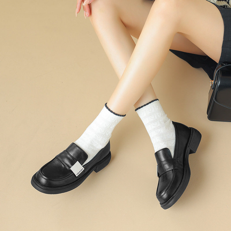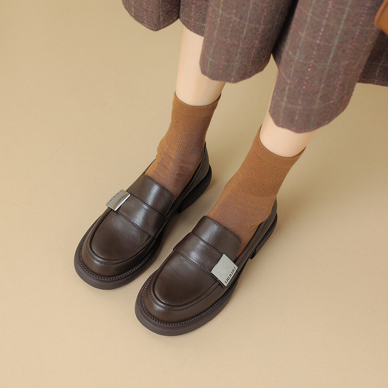 FairyWink 北野花雾~!粗跟厚底金属扣乐福鞋女单鞋英伦风小皮鞋