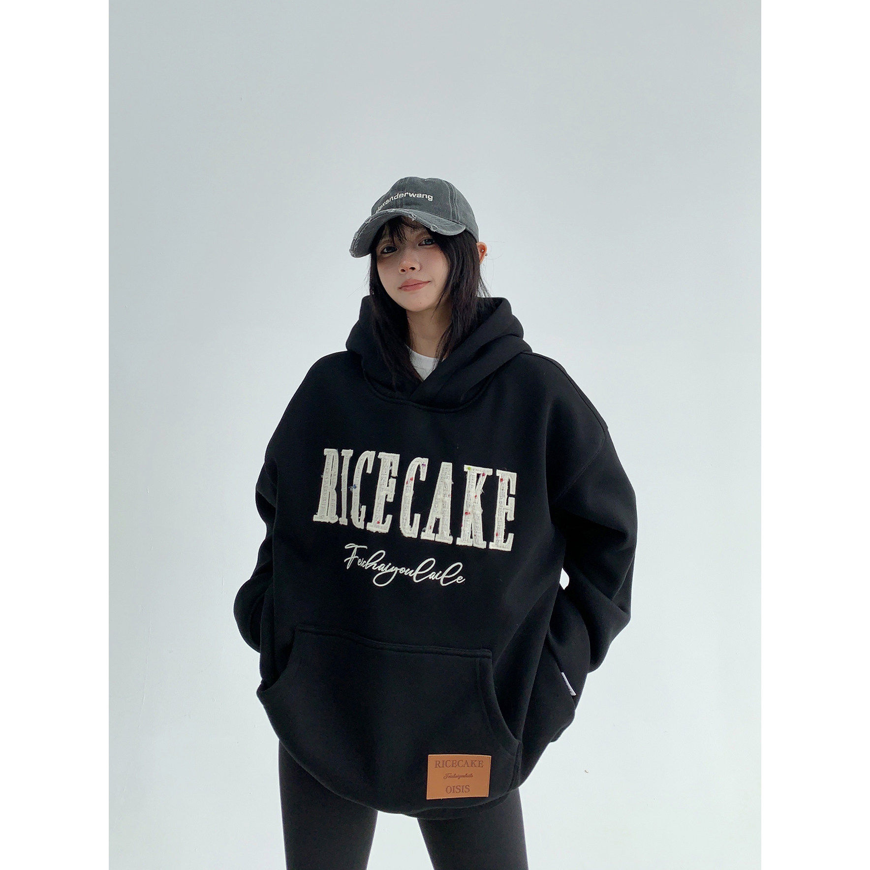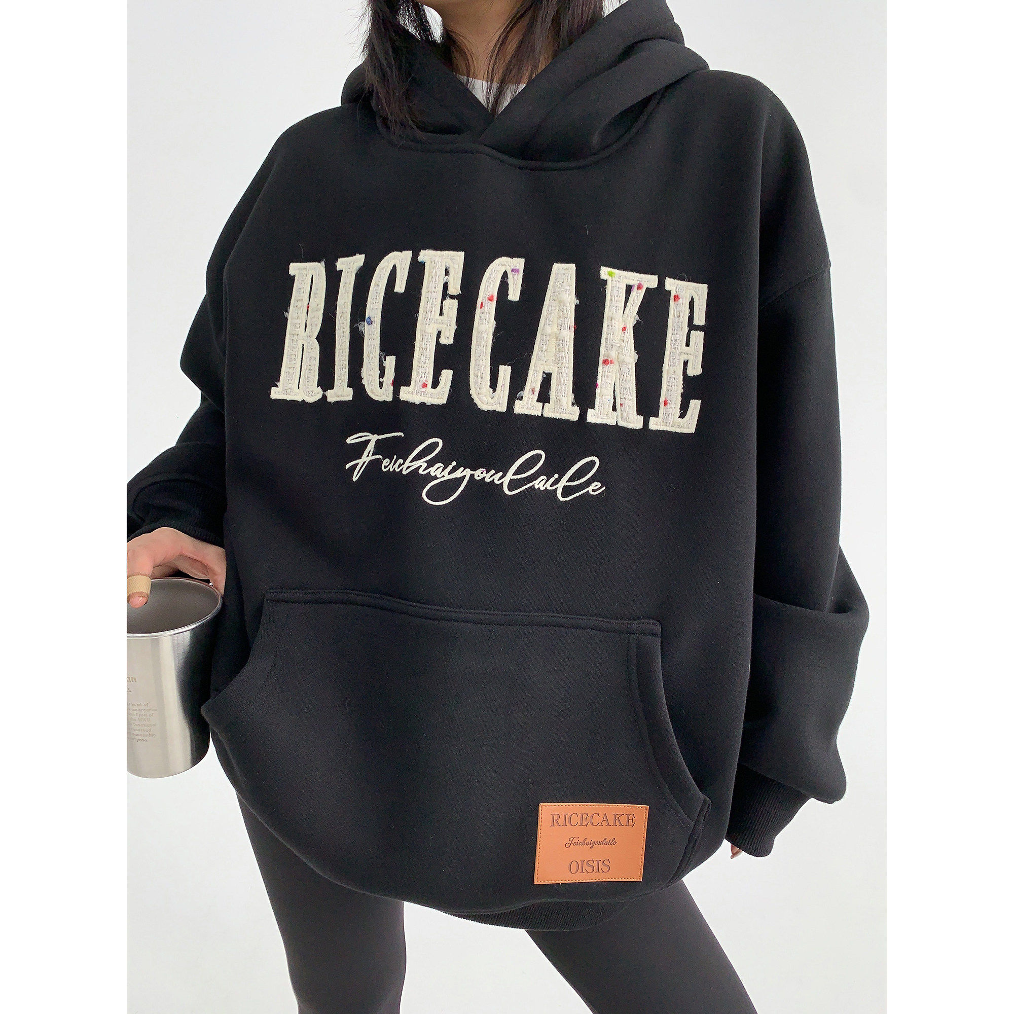 废柴秋季韩系重磅小香风贴布刺绣加厚连帽卫衣女宽松覆古小众外套