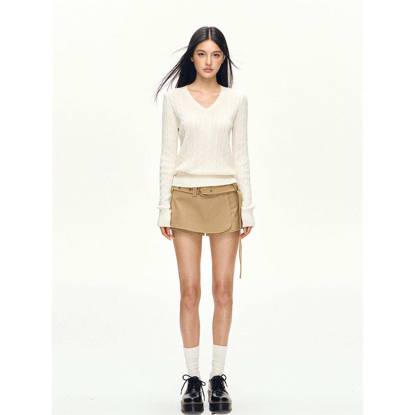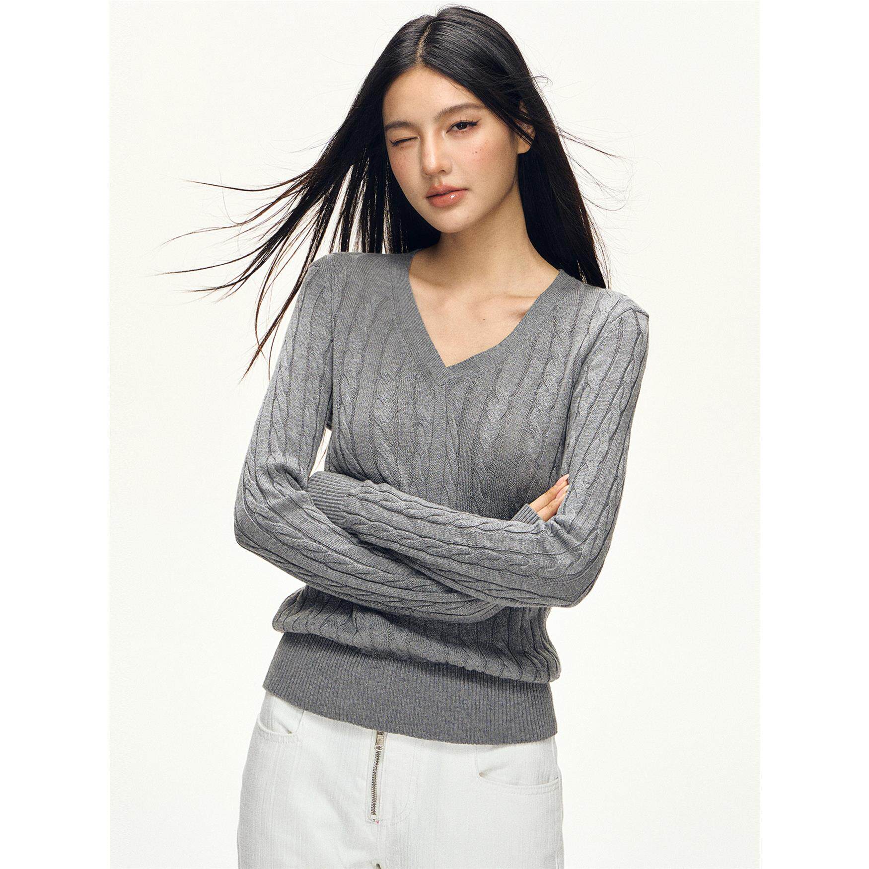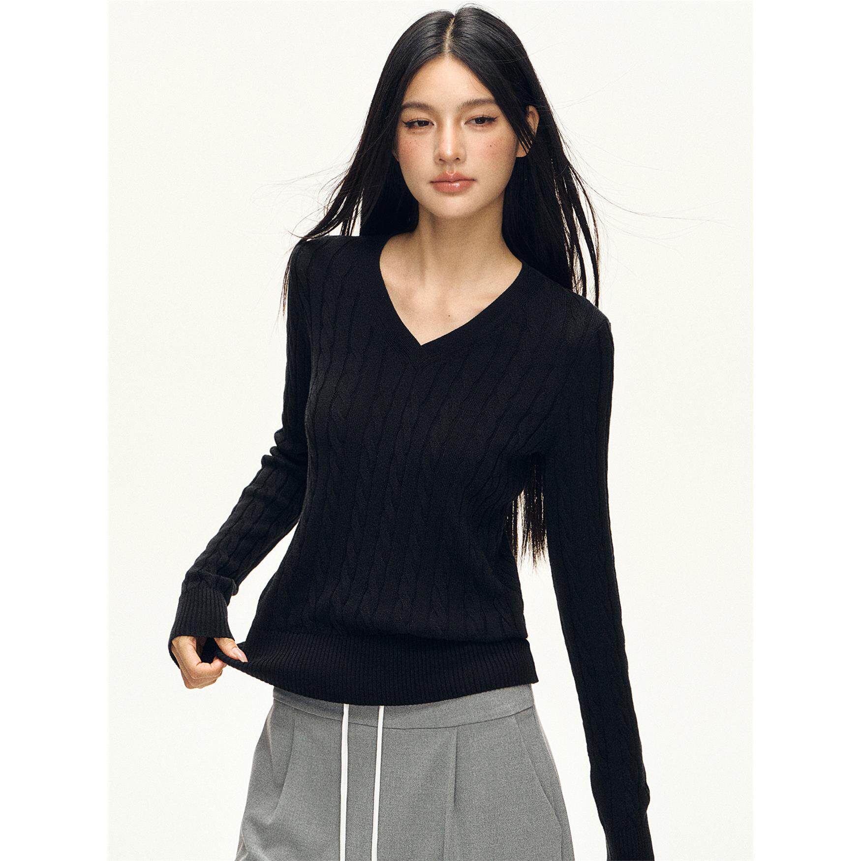 101PASSION V领麻花毛衣女早秋韩系氛围感内搭打底修身针织衫上衣
