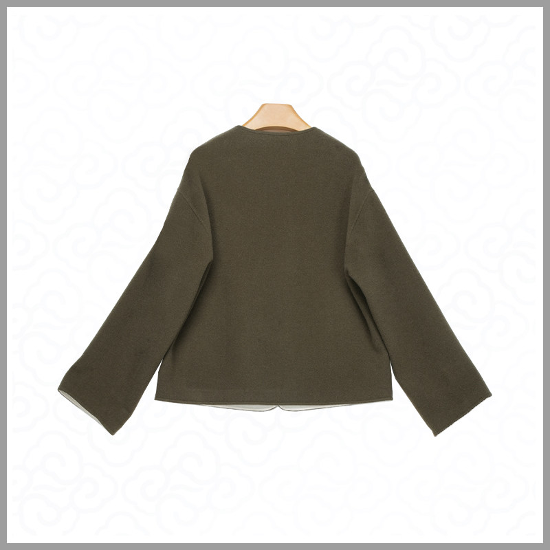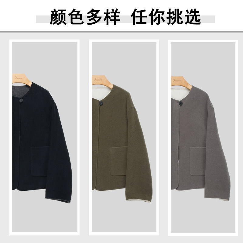 Y28013女士小香风毛呢短款外套宽松百搭双面呢双面异色