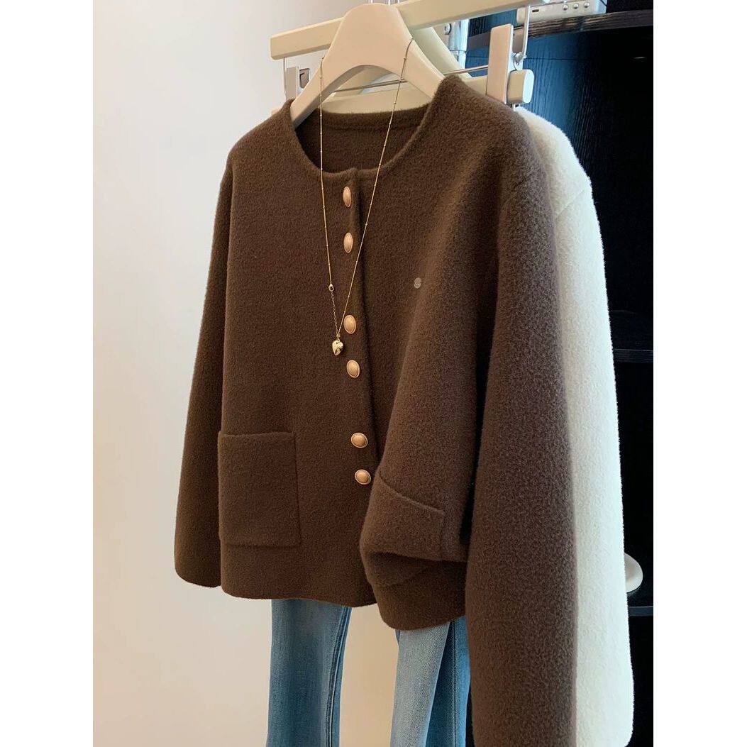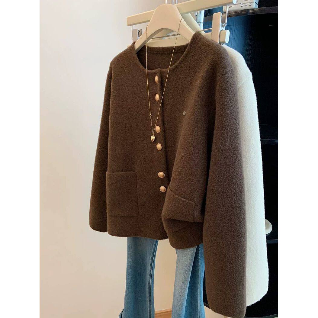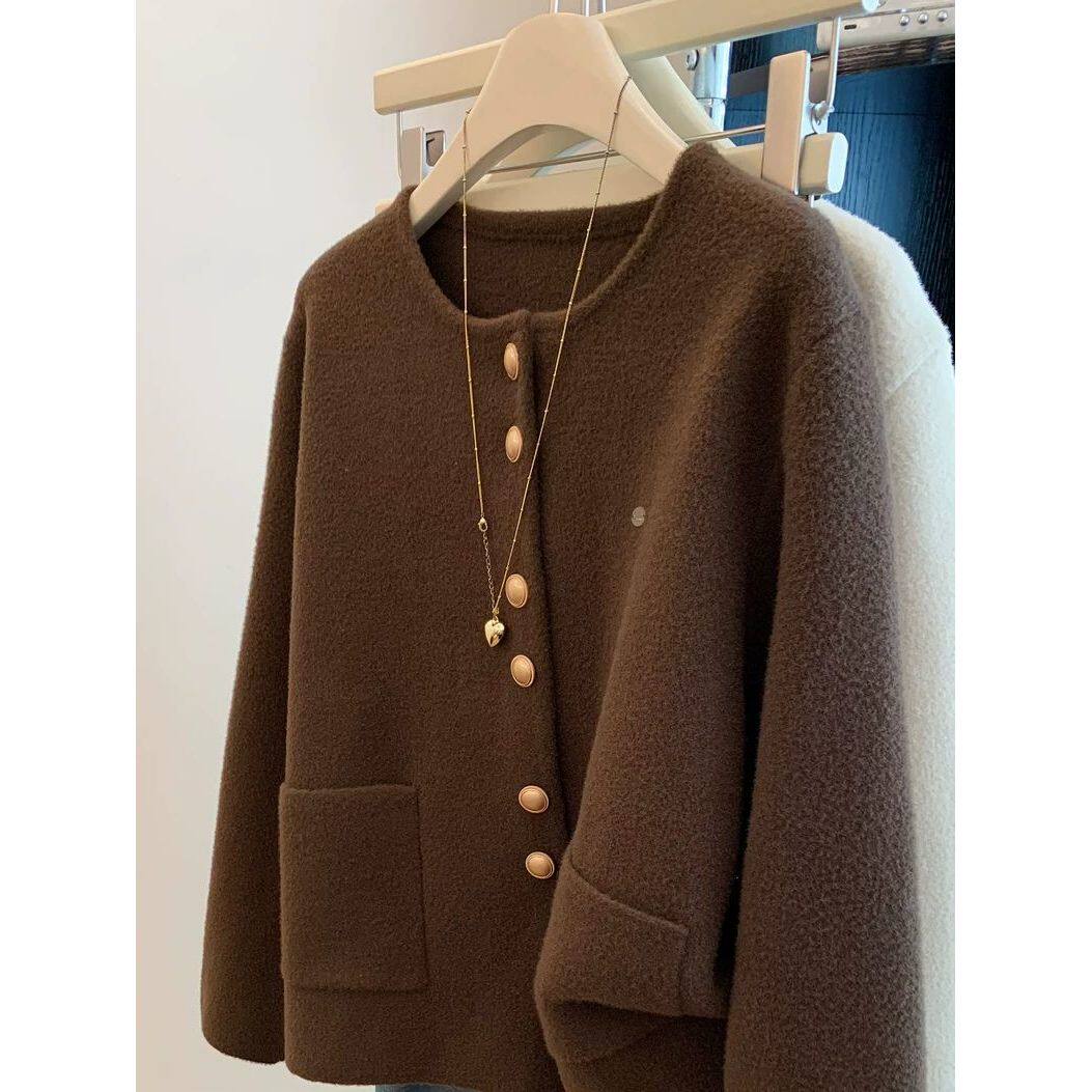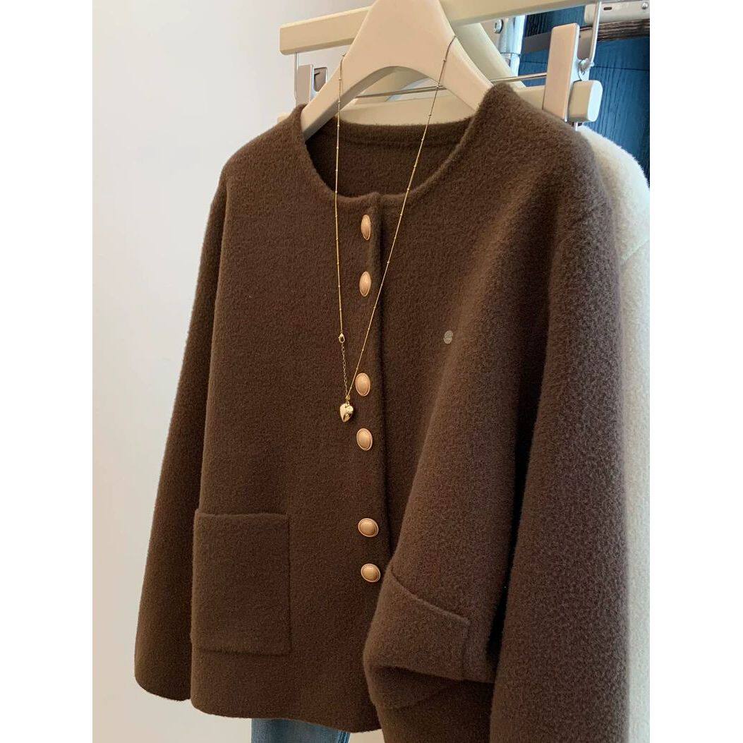 2025新款咖色圆领小香风外套女秋冬季新款气质高级感百搭开衫上衣