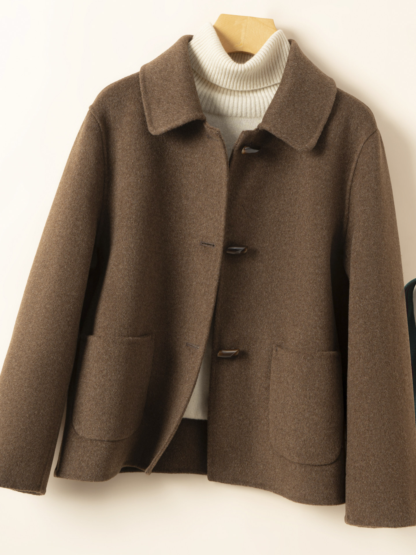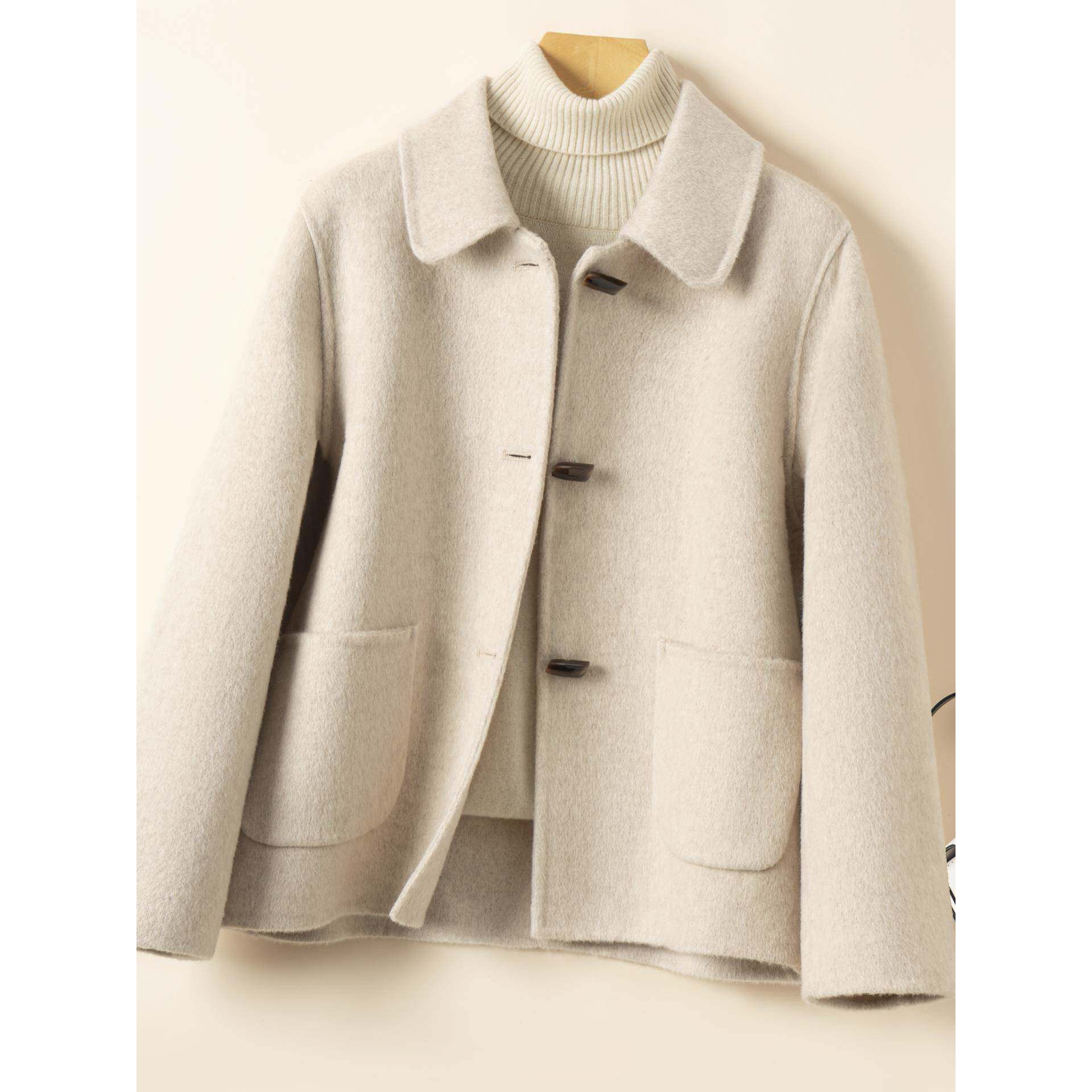 双面羊绒大衣女宽松短款小个子羊毛呢2025秋冬新款娃娃领毛呢外套