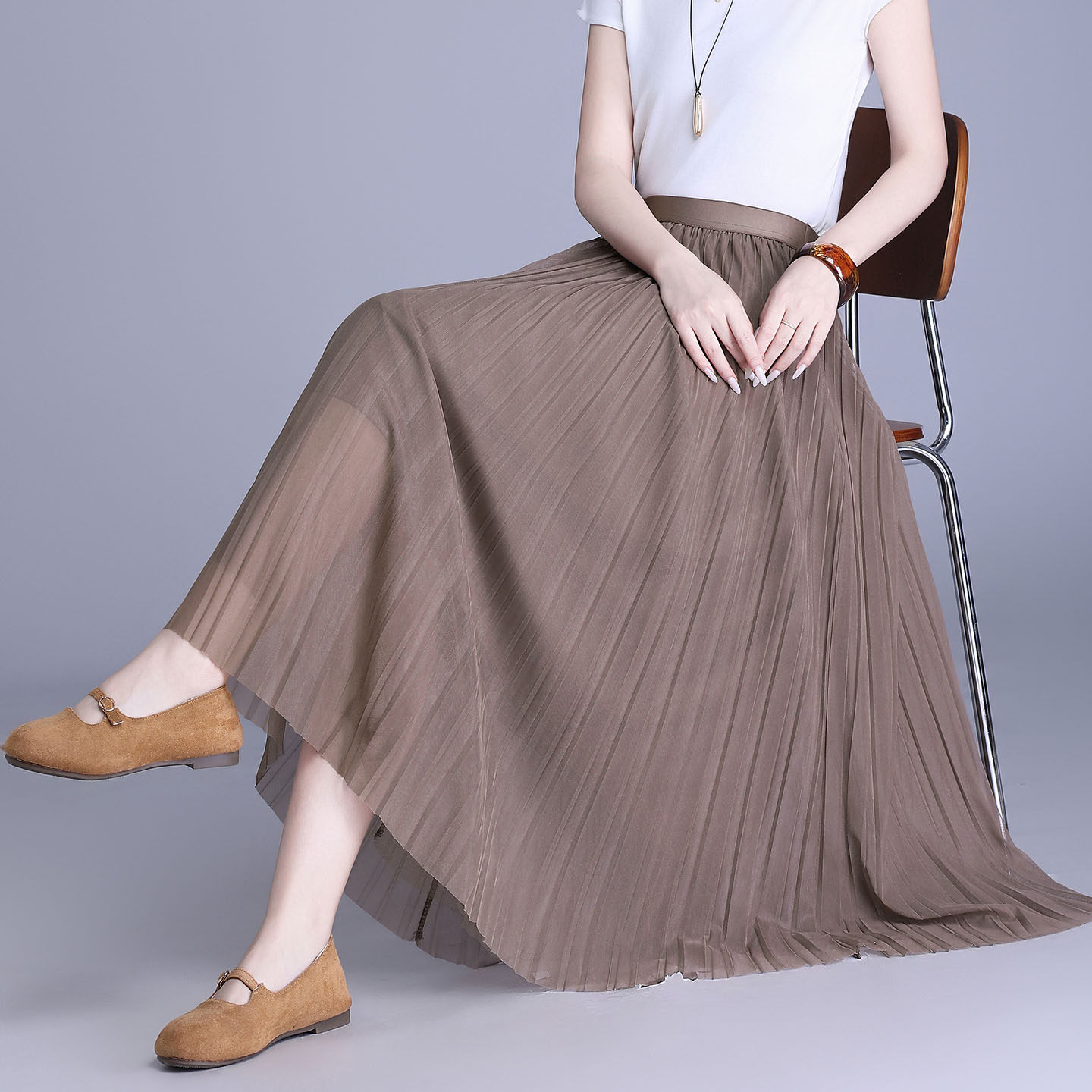 柔软细网纱半身裙女春夏季百褶裙2026新款显瘦中长款裙子大摆伞裙