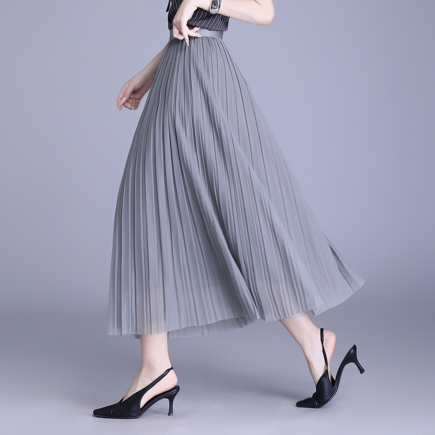 首页> 女装> 柔软细网纱半身裙女春夏季百褶裙2026新款显瘦中长款裙子大摆伞裙