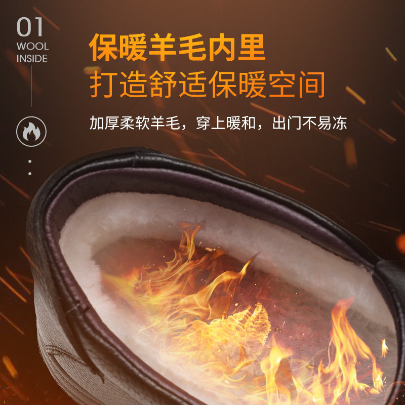 3515强人品牌正品棉皮鞋男式冬季保暖羊毛鞋加厚高帮棉鞋一脚蹬鞋