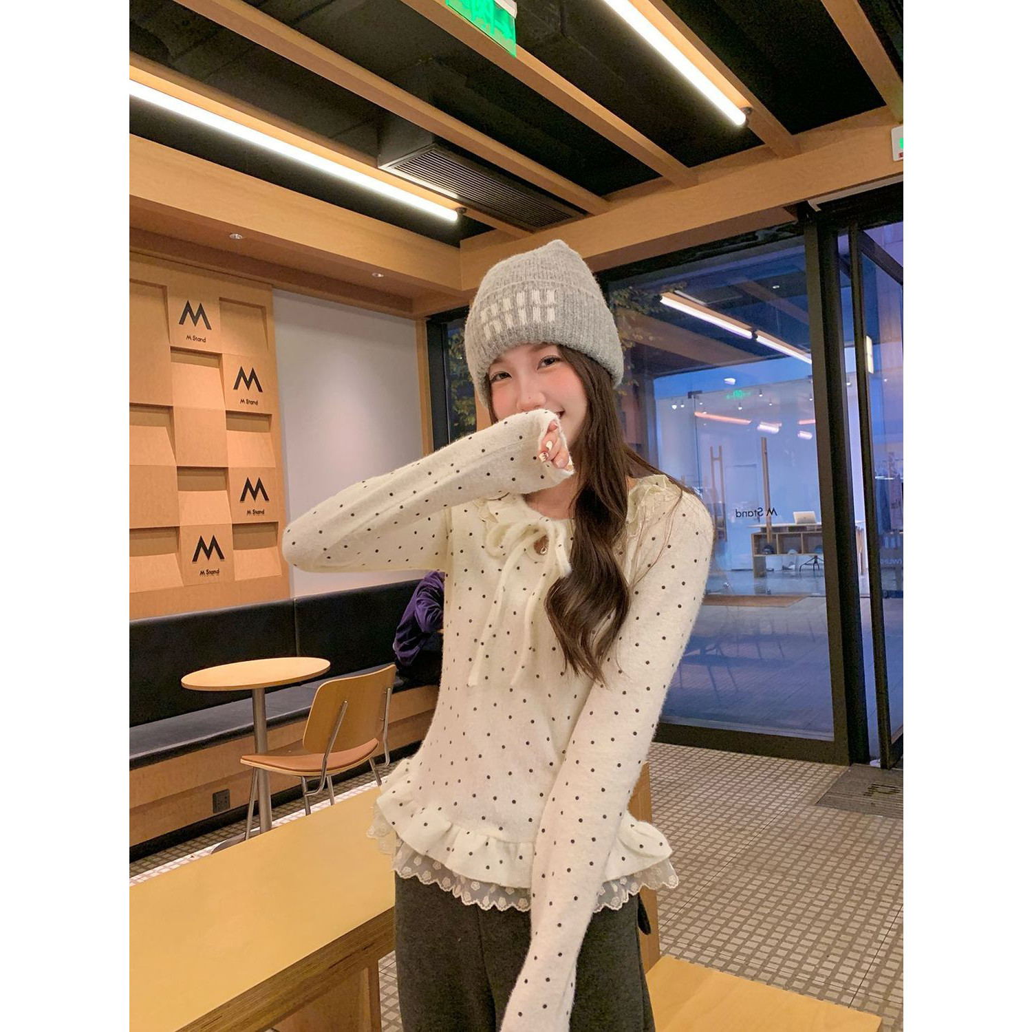 叠穿波点女拼接蕾丝花边内搭打底衫上衣