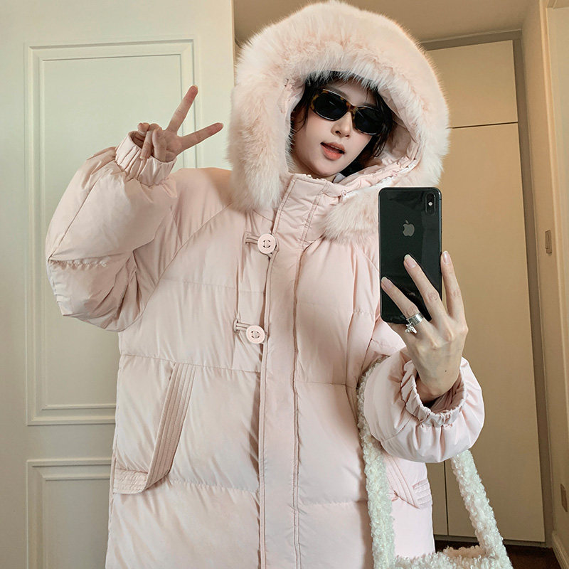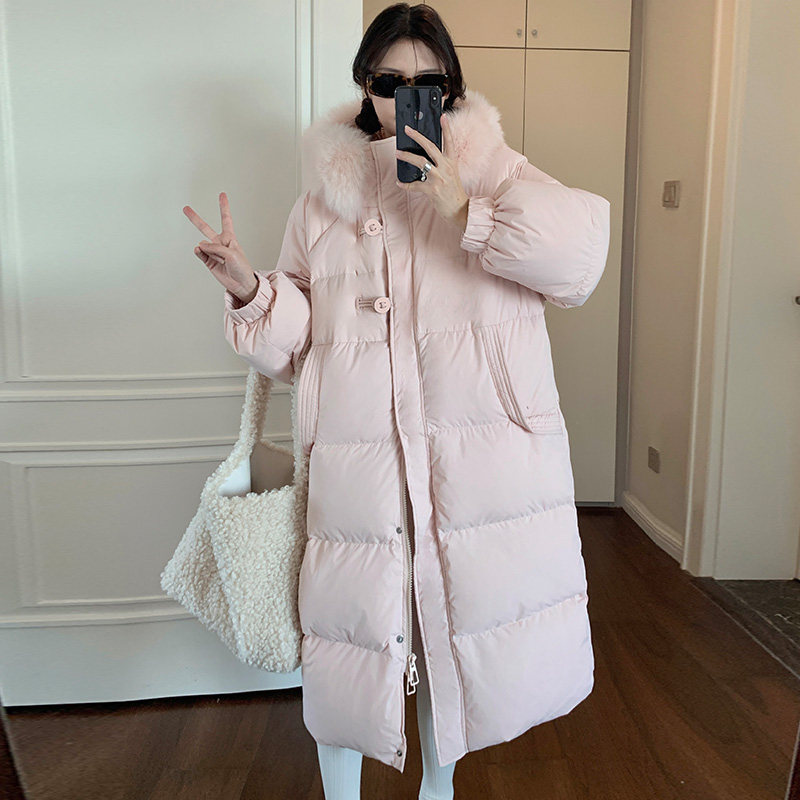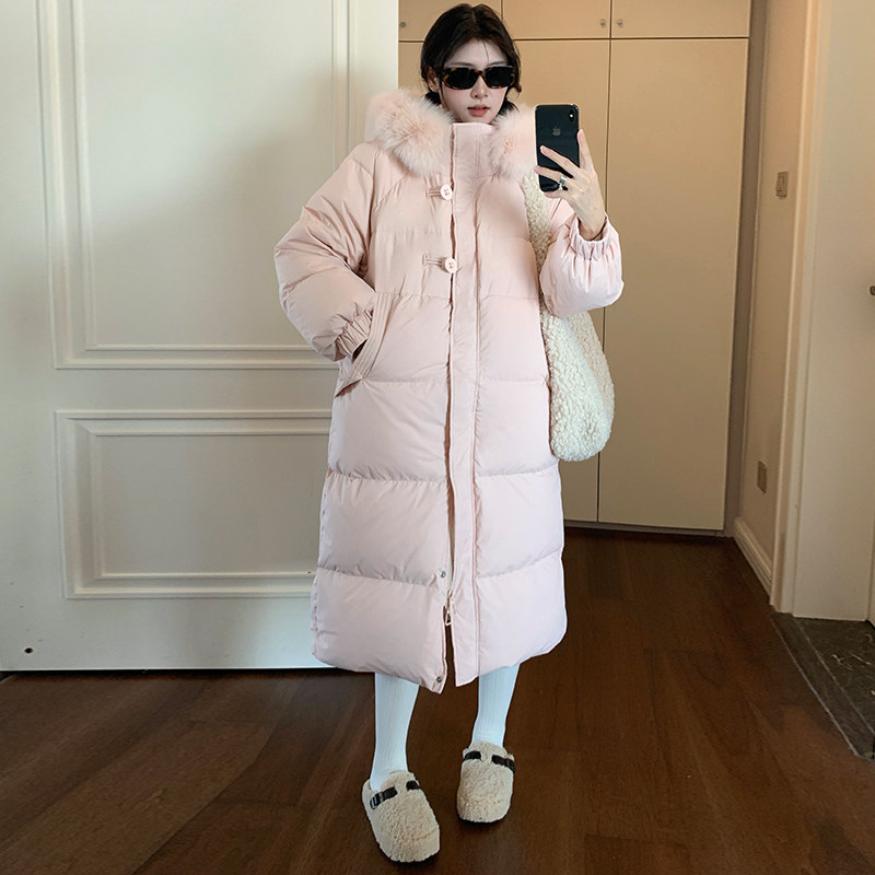 粉色羽绒服女款冬季2025新款韩系设计感超好看过膝长款外套