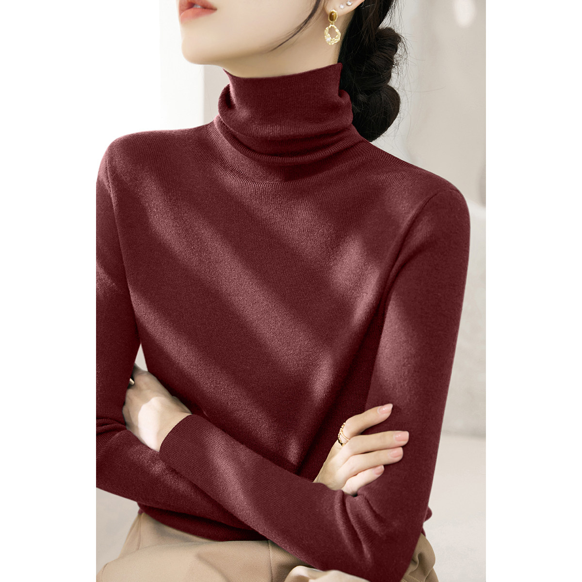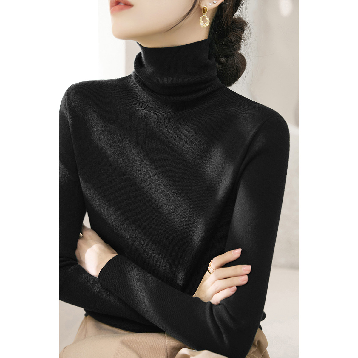冬季新款高级感深灰色堆堆领毛衣修身长袖针织衫女装内搭打底上衣