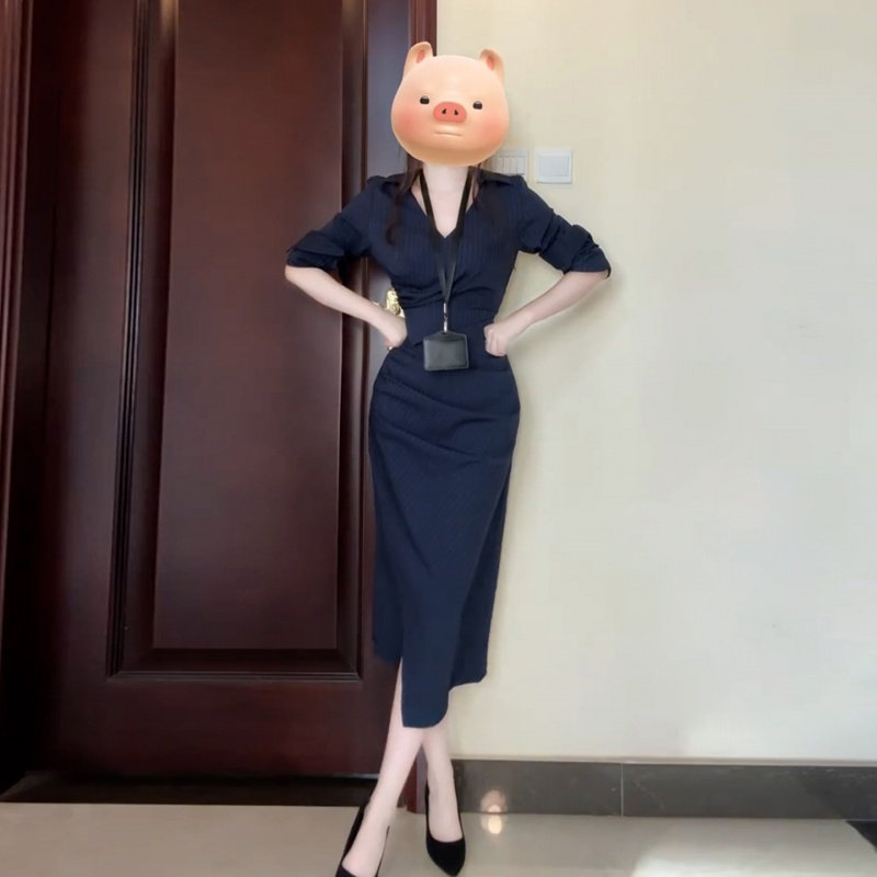 法式气质长袖条纹衬衫连衣裙子女秋季2025新款感穿搭包臀长裙