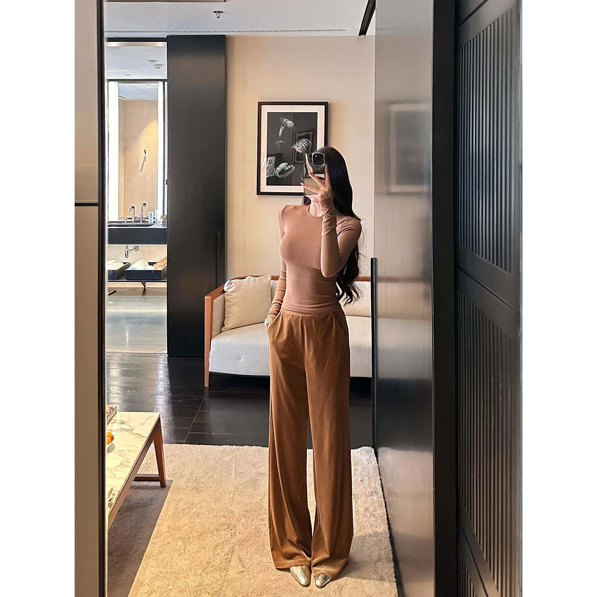SX善喜3色高腰垂感丝绒阔腿裤宽松显瘦直筒裤简约百搭休闲裤子女