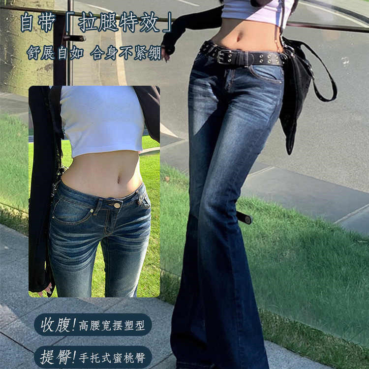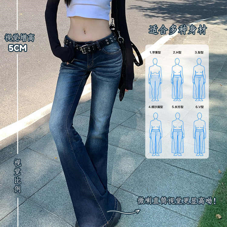 美式复古低腰辣妹微喇叭牛仔裤女2025秋冬新款弹力修身显瘦马蹄裤