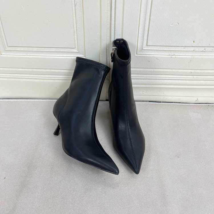 外贸原单女靴气质时尚新款尖头纯色细高跟侧拉链时装短靴瘦瘦靴