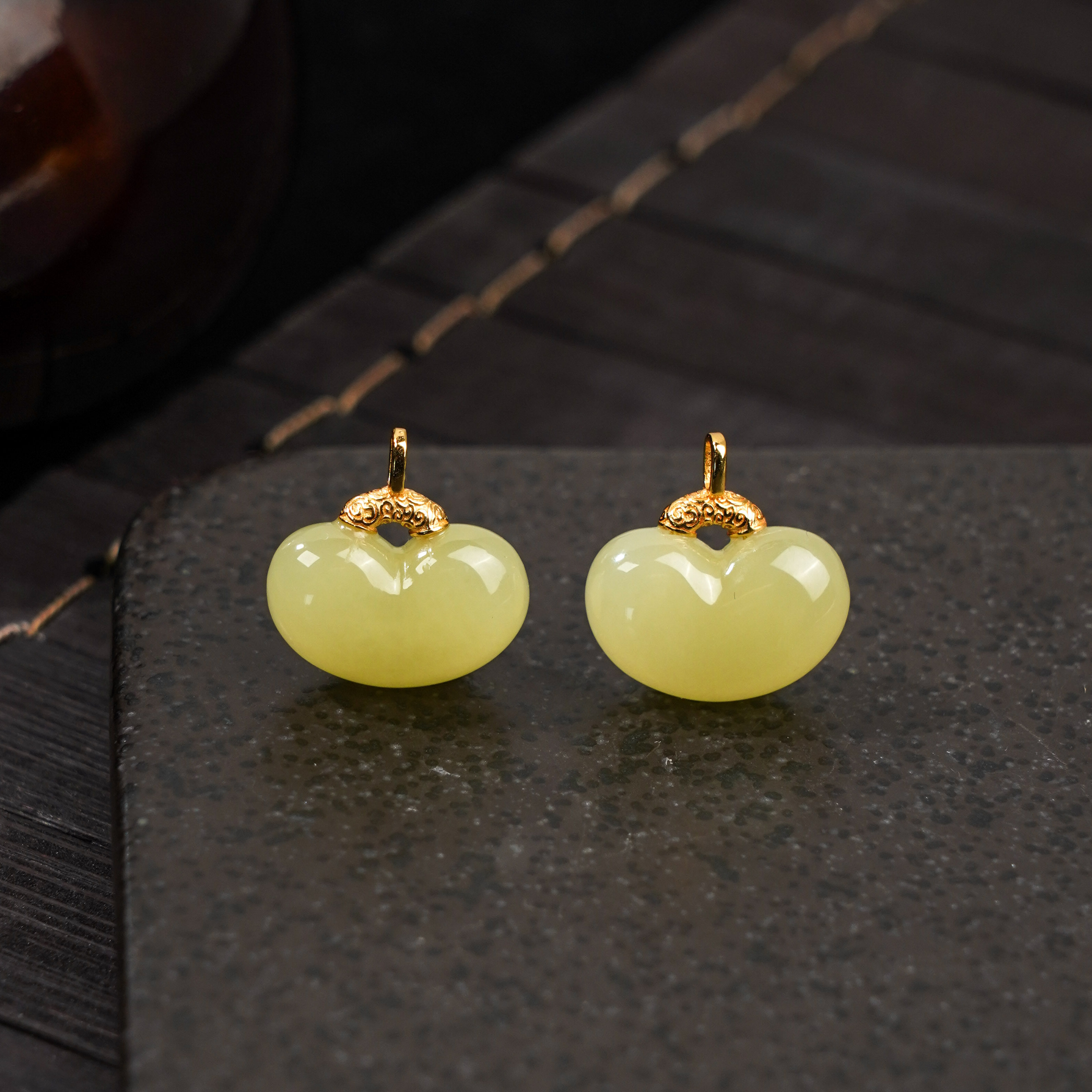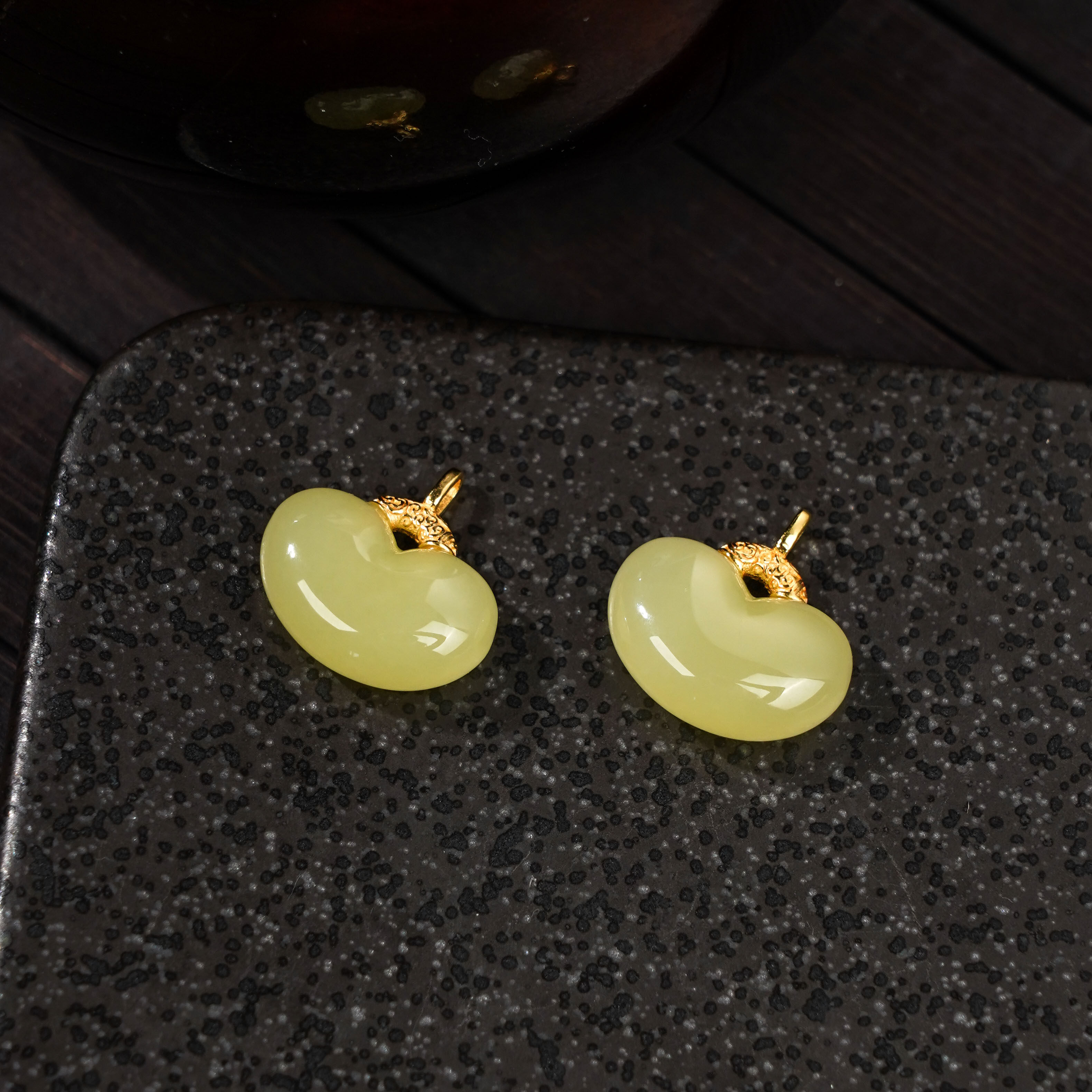 【朱朱严选】和田玉*黄口相思豆吊坠*银925镶嵌*11*17*7mm