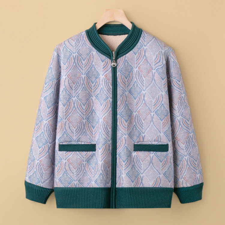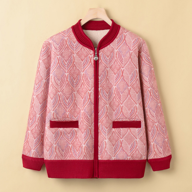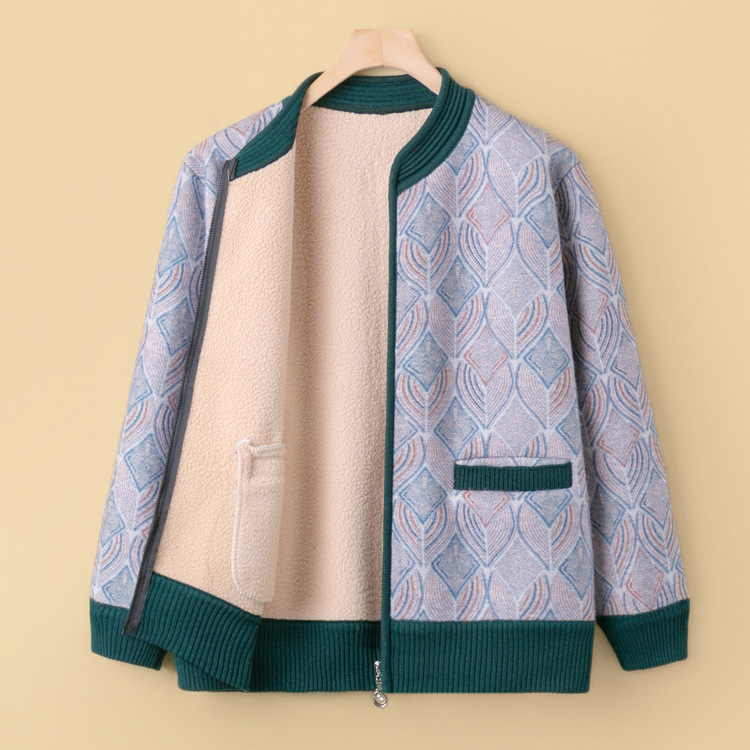 中老年女秋冬款妈妈加绒加厚针织衫毛衣保暖上衣奶奶装羊羔绒