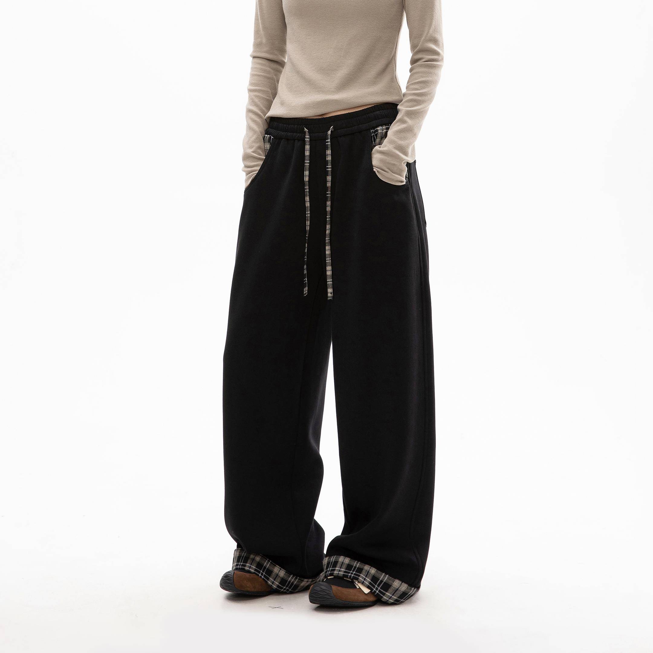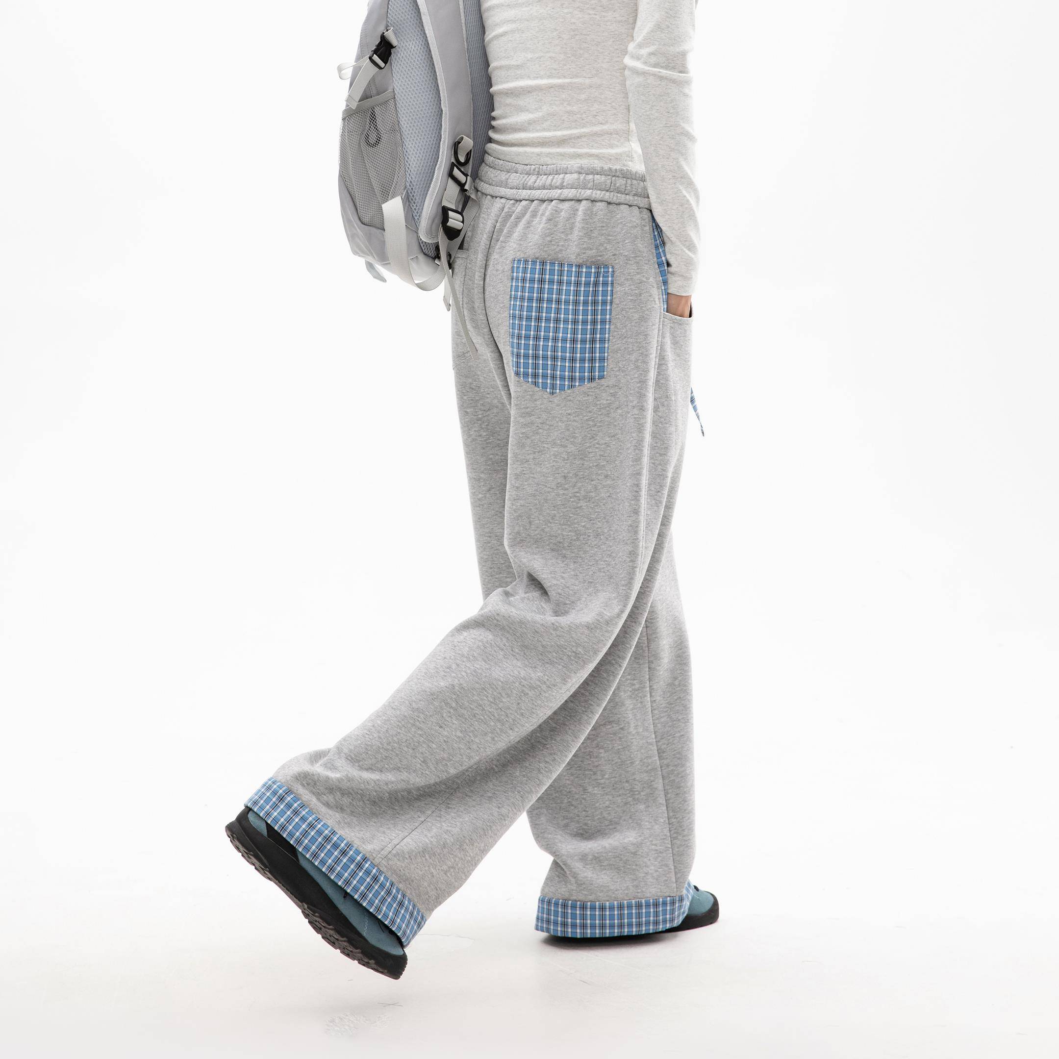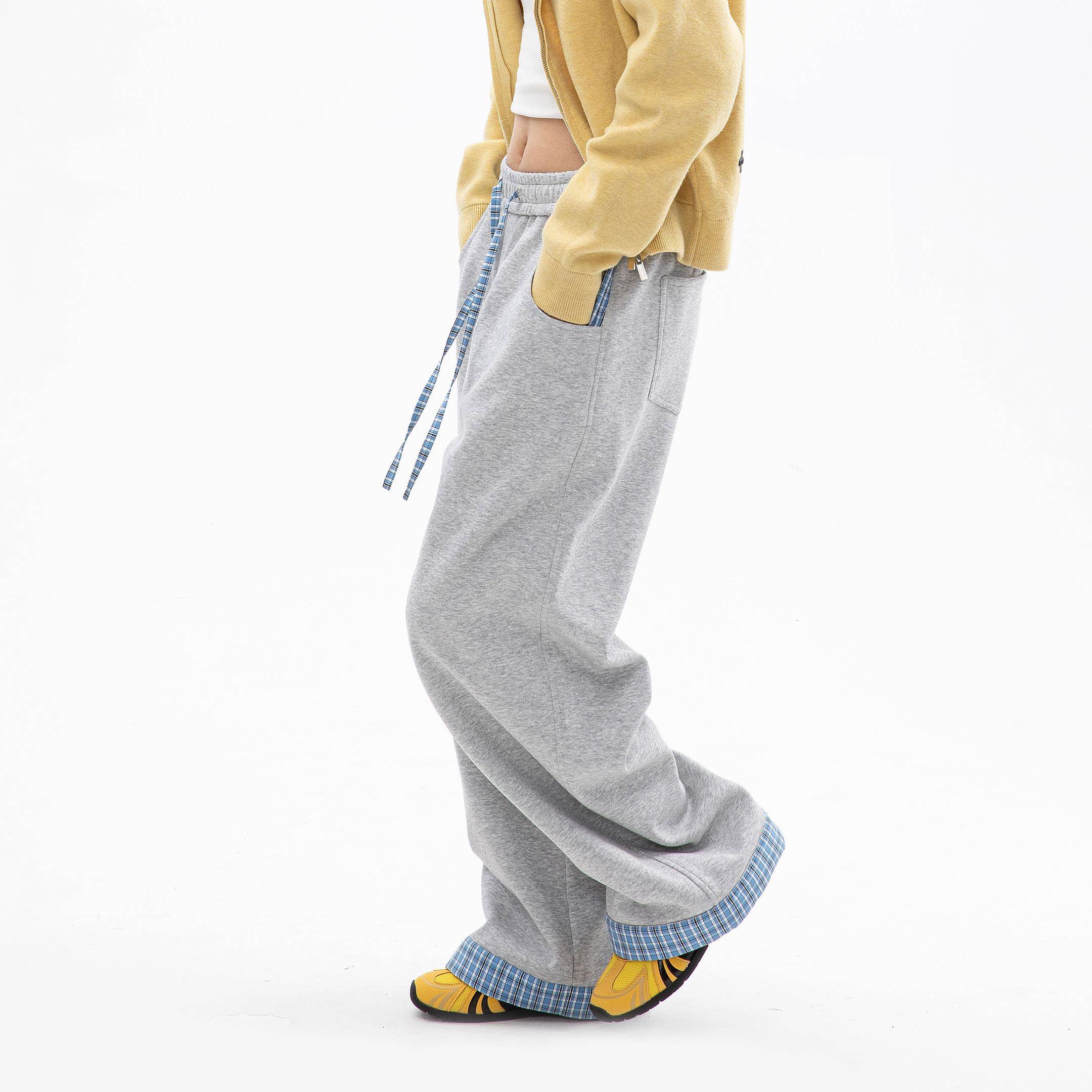 OWOX 秋季撞色格子拼接垂感慵懒松弛感裤子宽松bf直筒阔腿卫裤女
