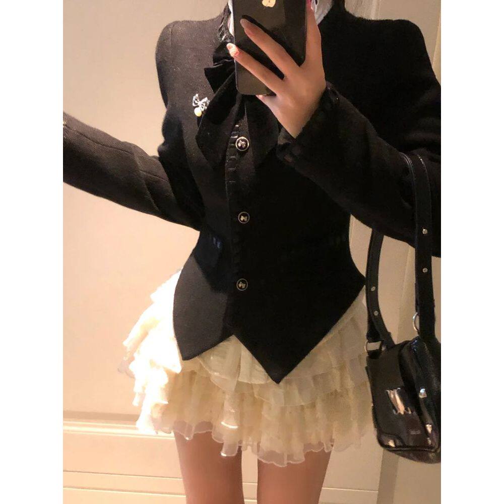 绯闻女主 冬装小香风气质小众设计感显瘦长袖外套蛋糕裙千金套装